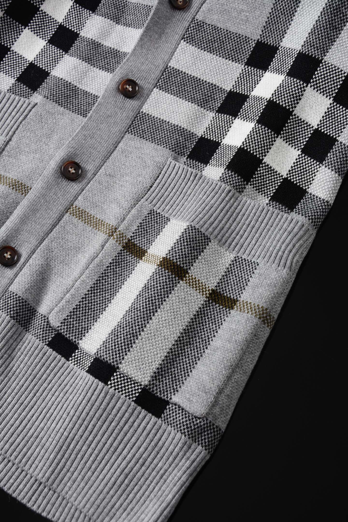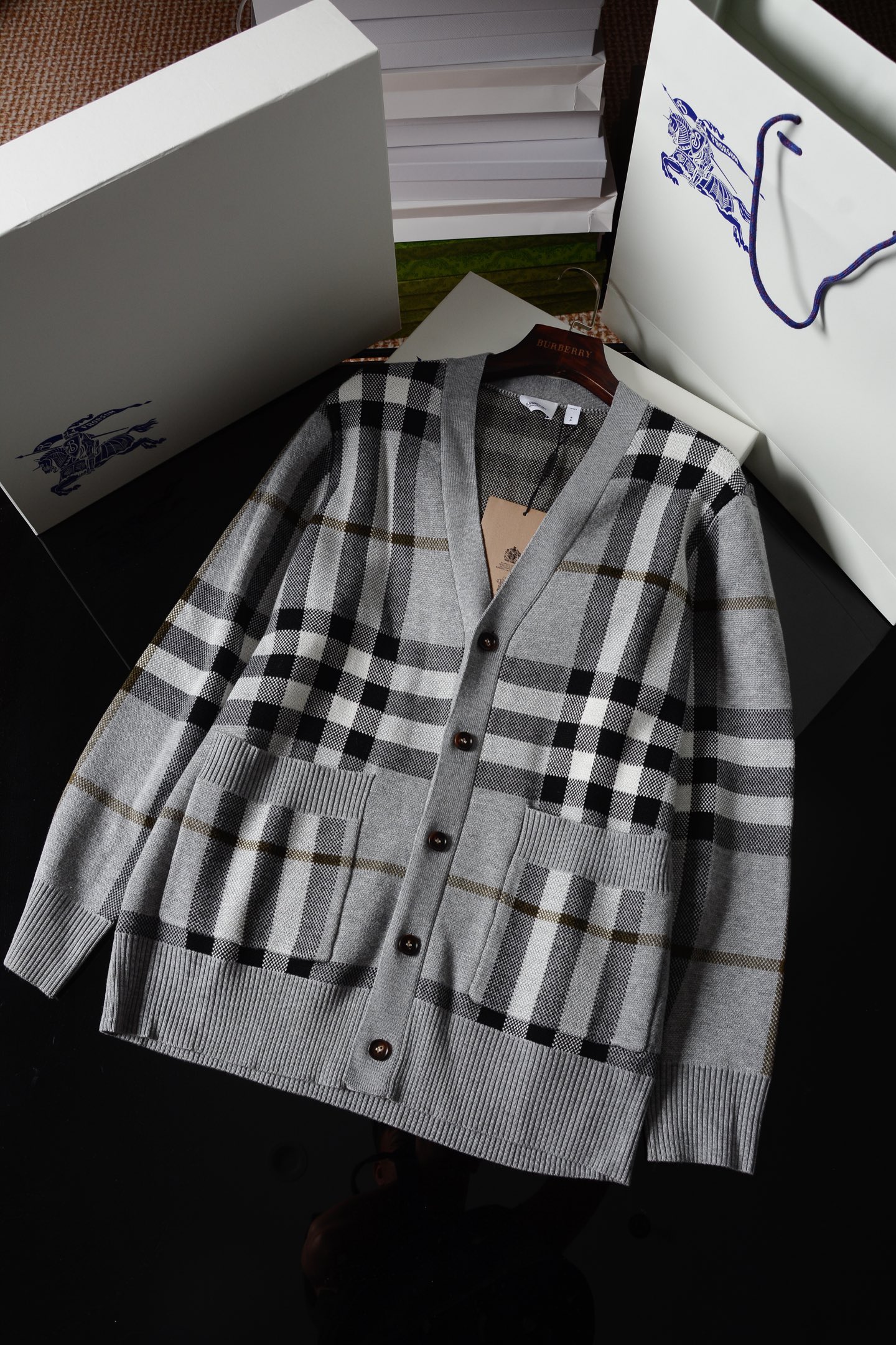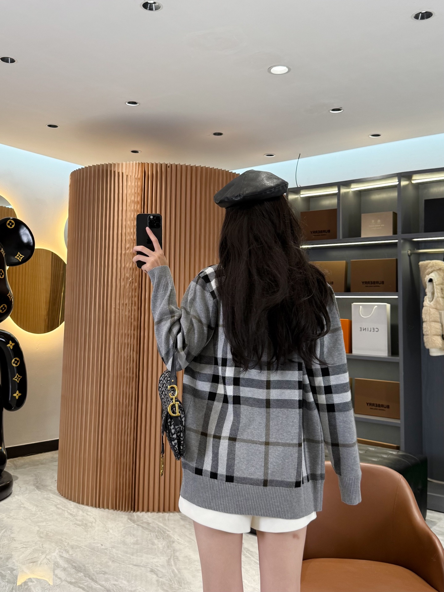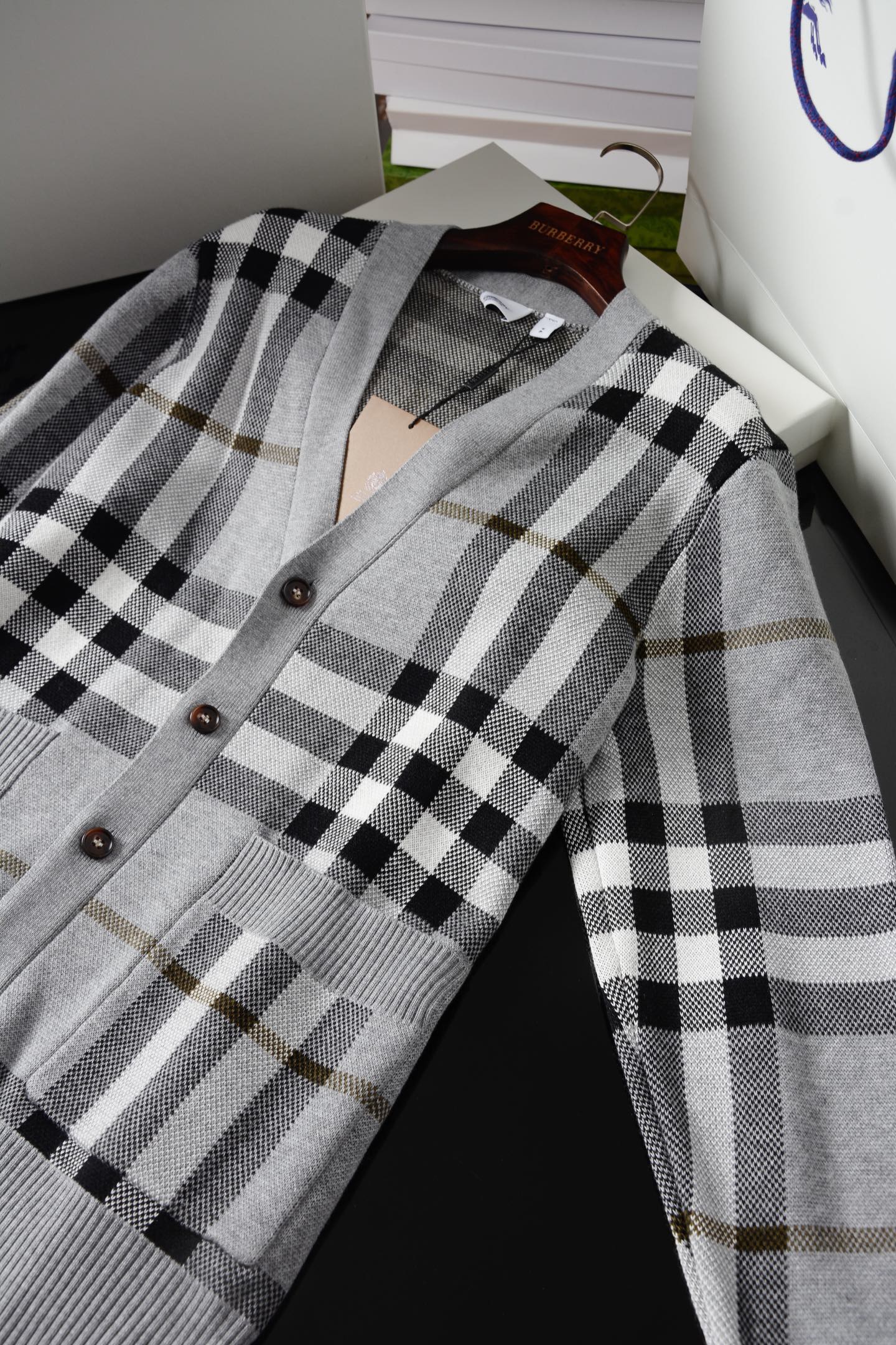 2025秋冬新品 Burberry 灰色格紋羊毛混紡提花開衫 精品 高仿