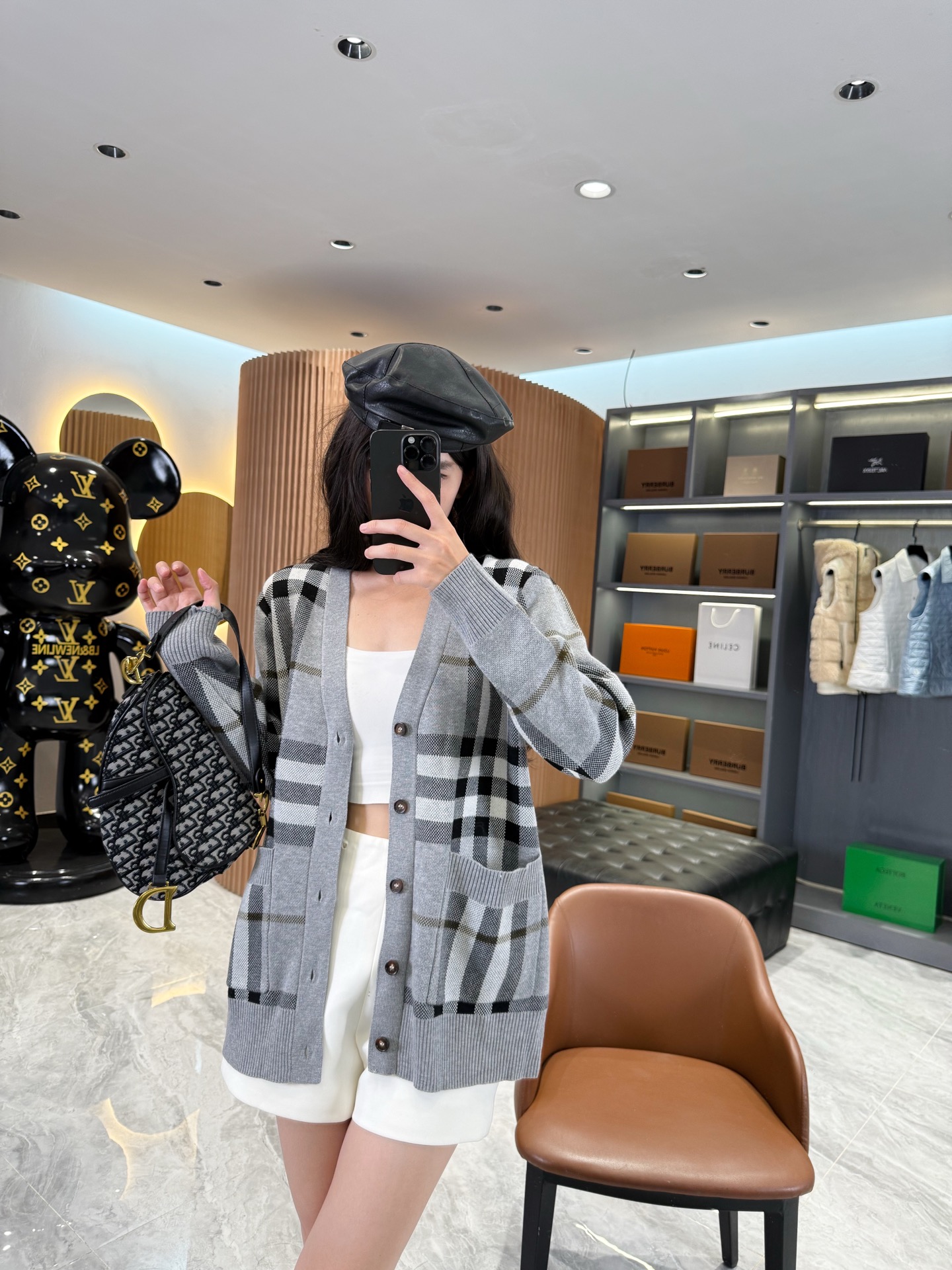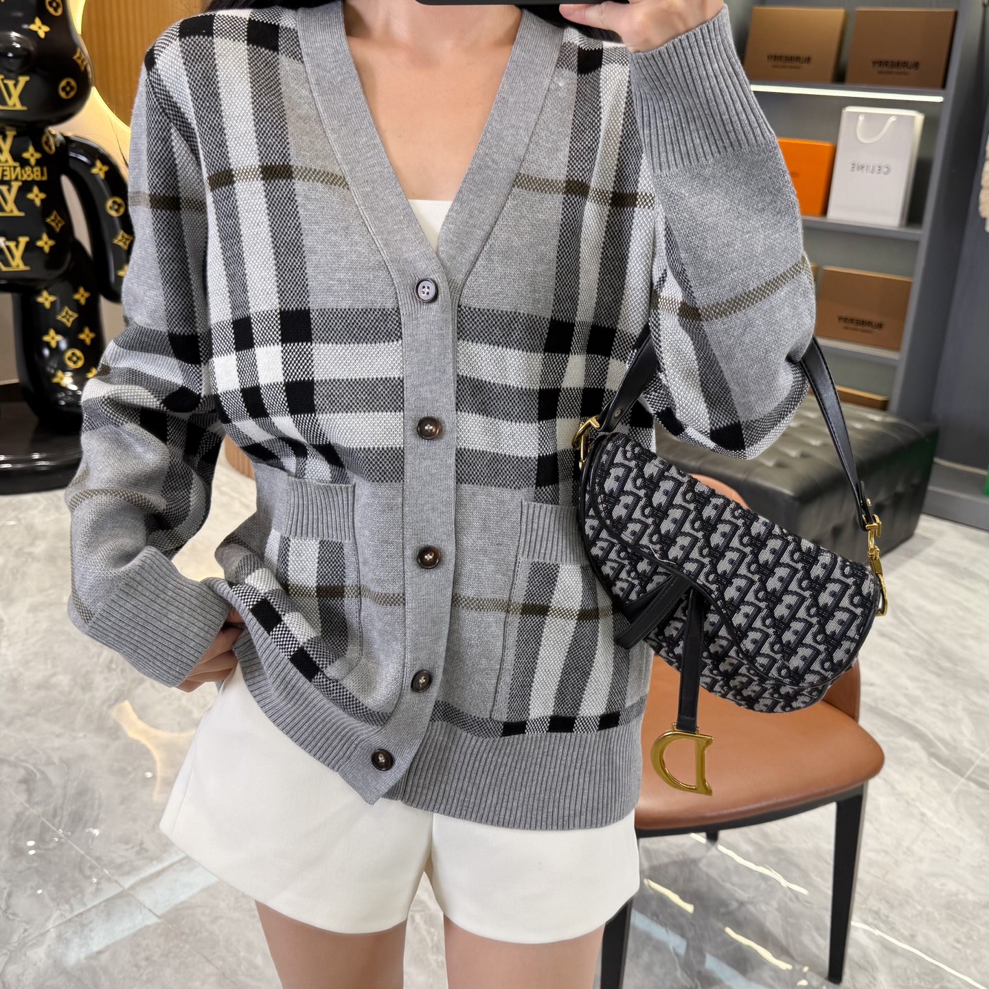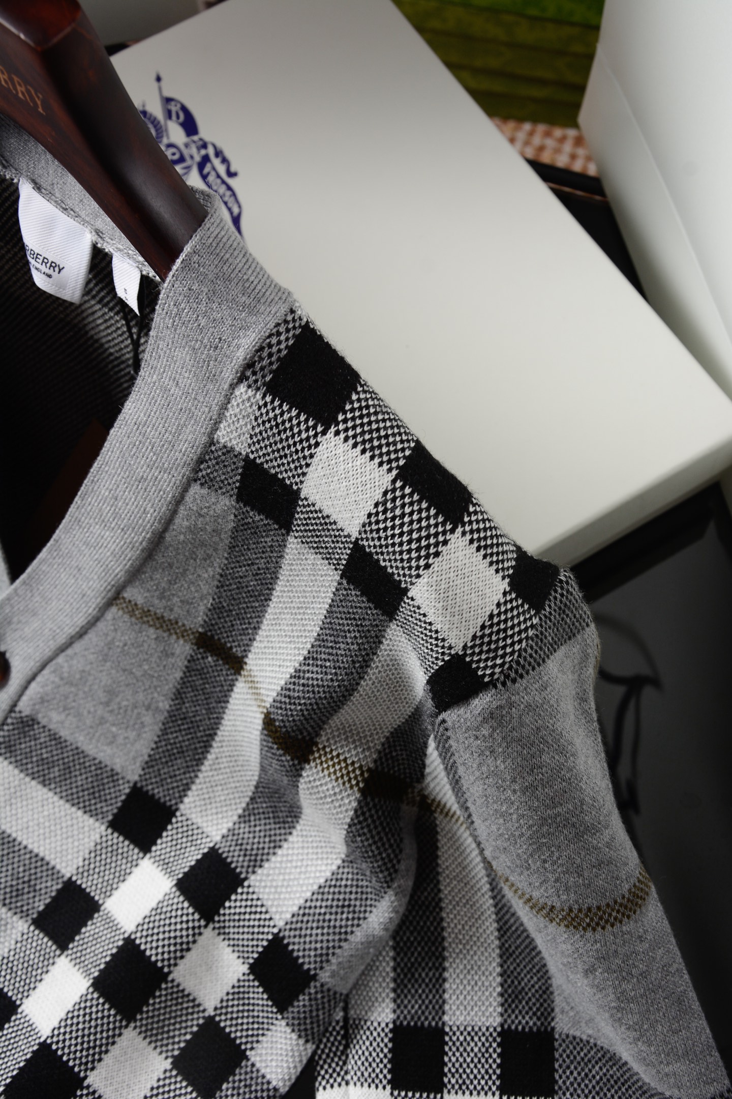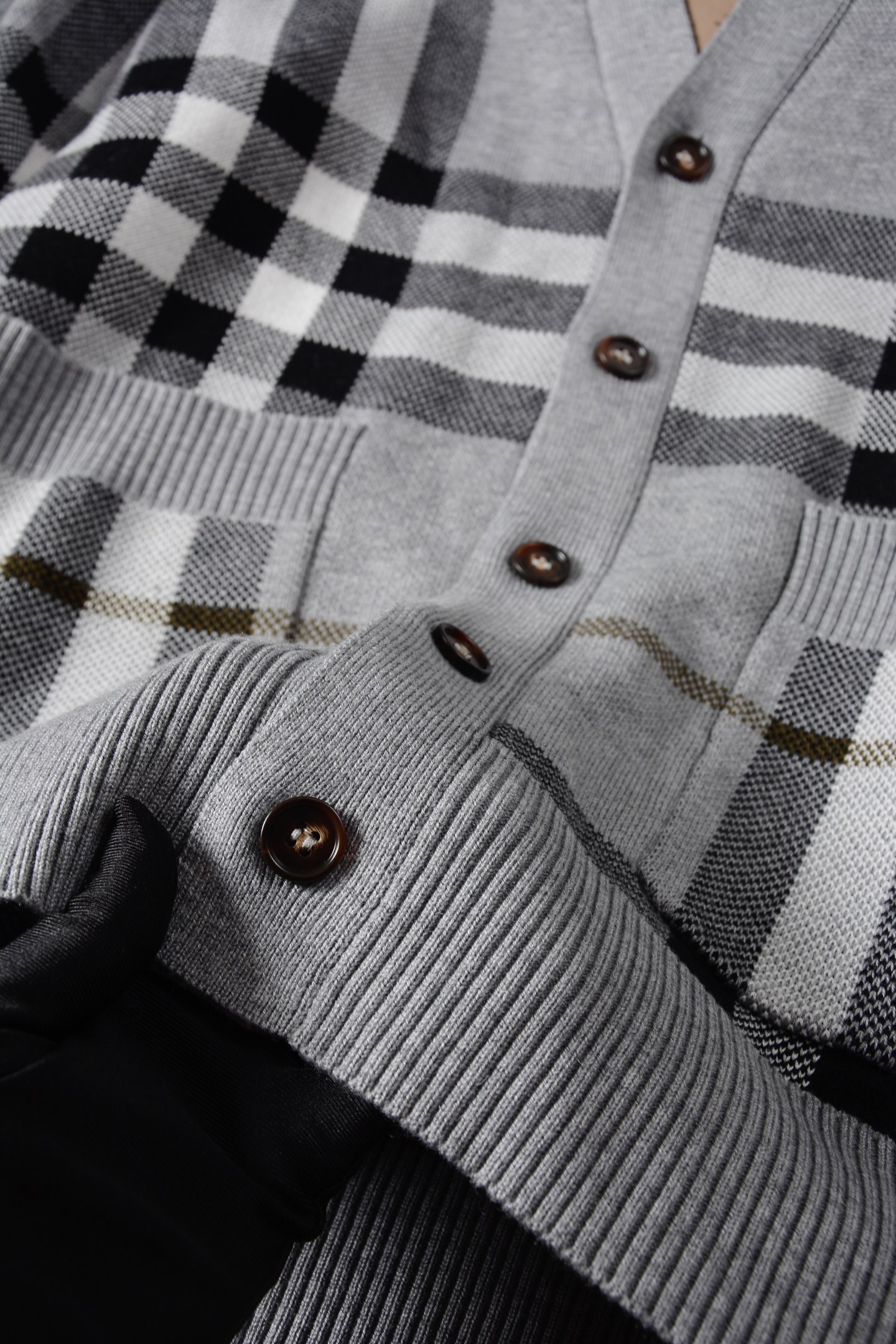 2025秋冬新品 Burberry 灰色格紋羊毛混紡提花開衫 精品 高仿