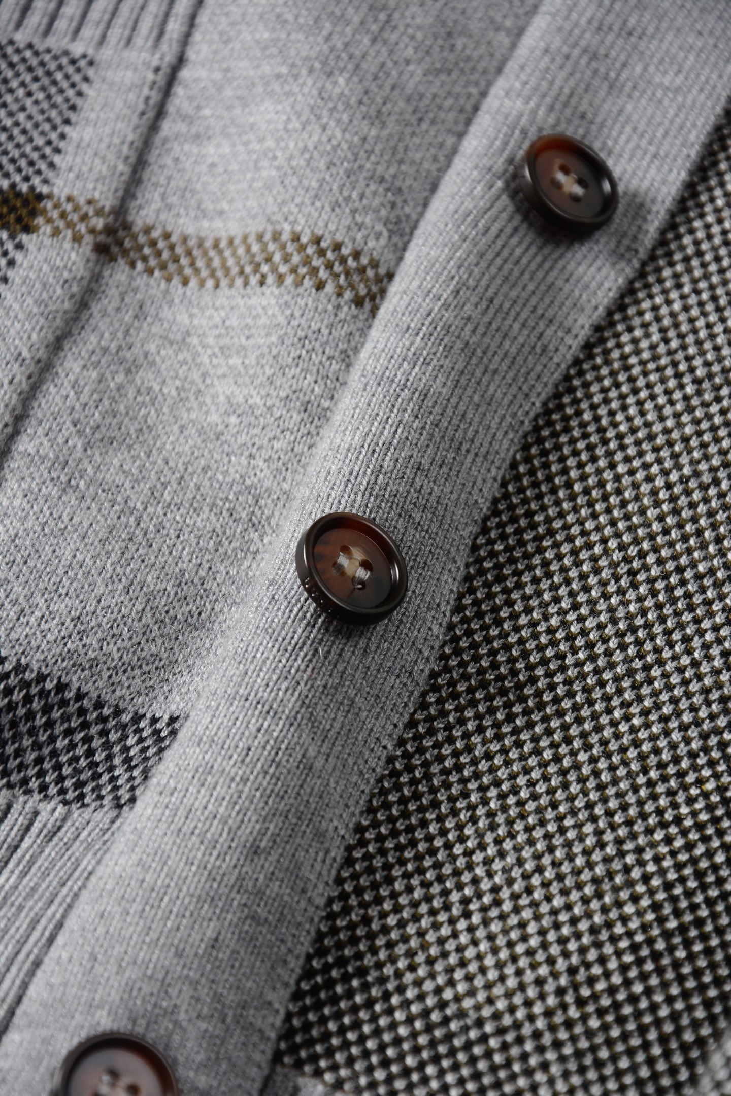 這件灰色格紋羊毛混紡提花開衫,完美體現了 BUR 一貫的經典理念,把格紋與時尚緊密結合。