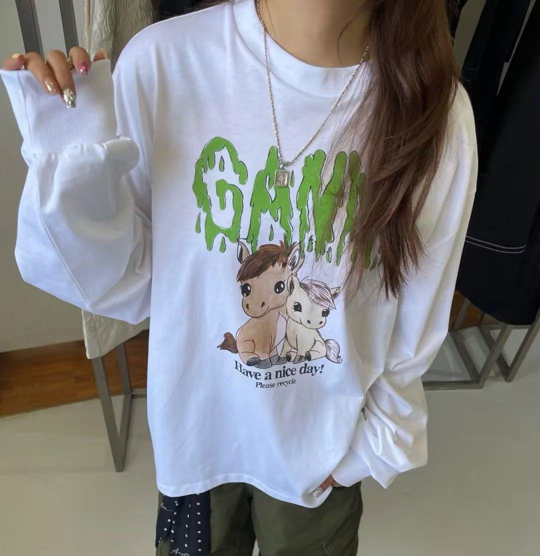 2025早秋新品 Ganni家 獨角獸圖案寬鬆長袖