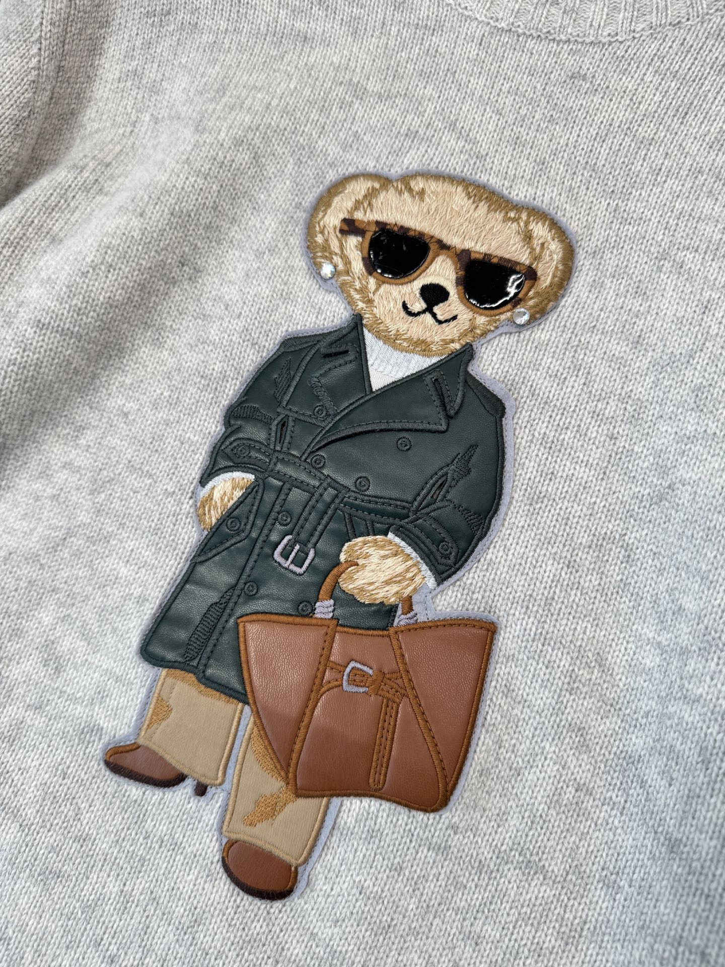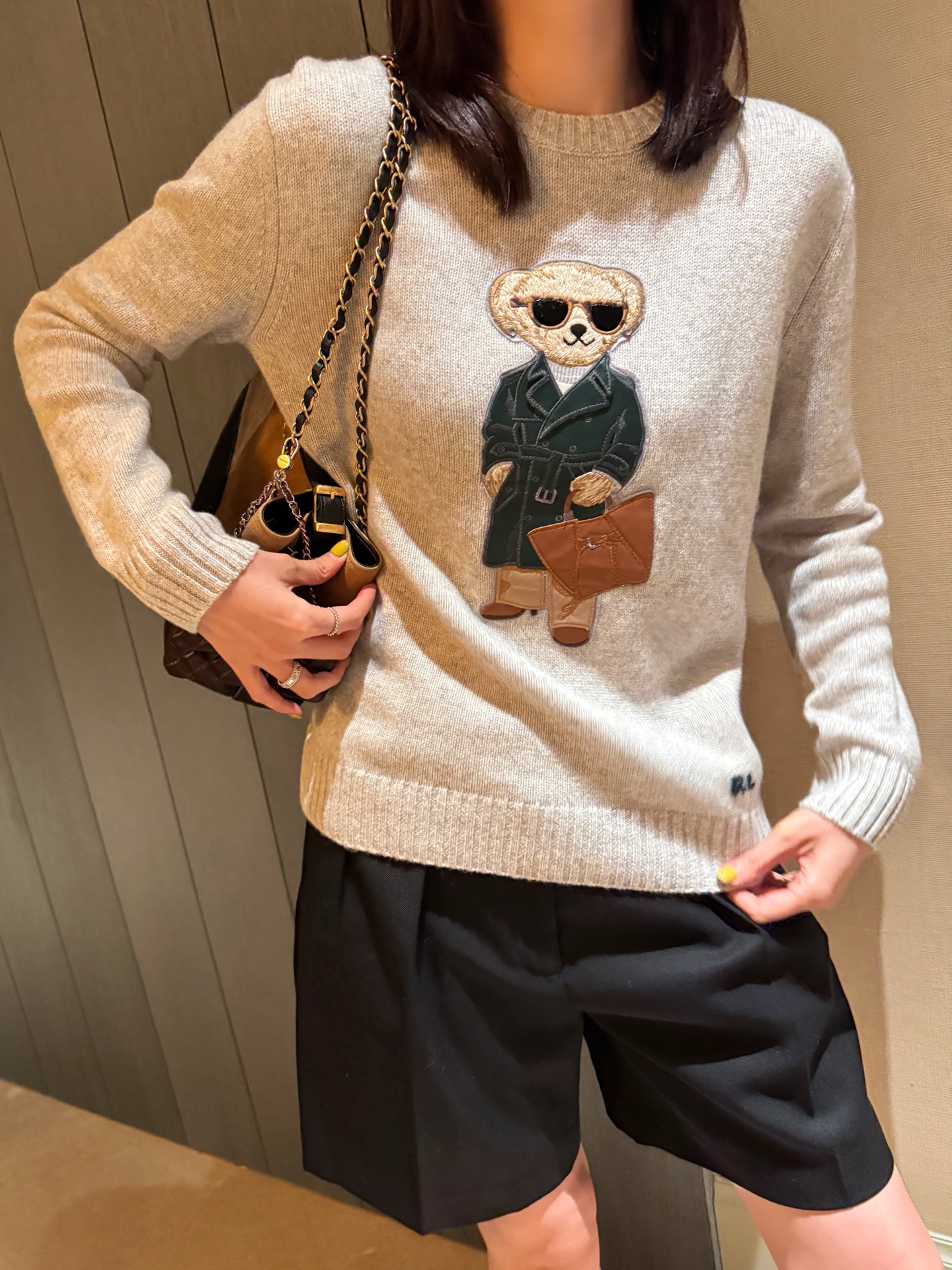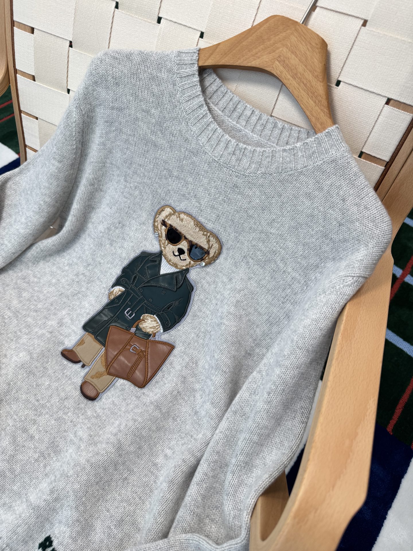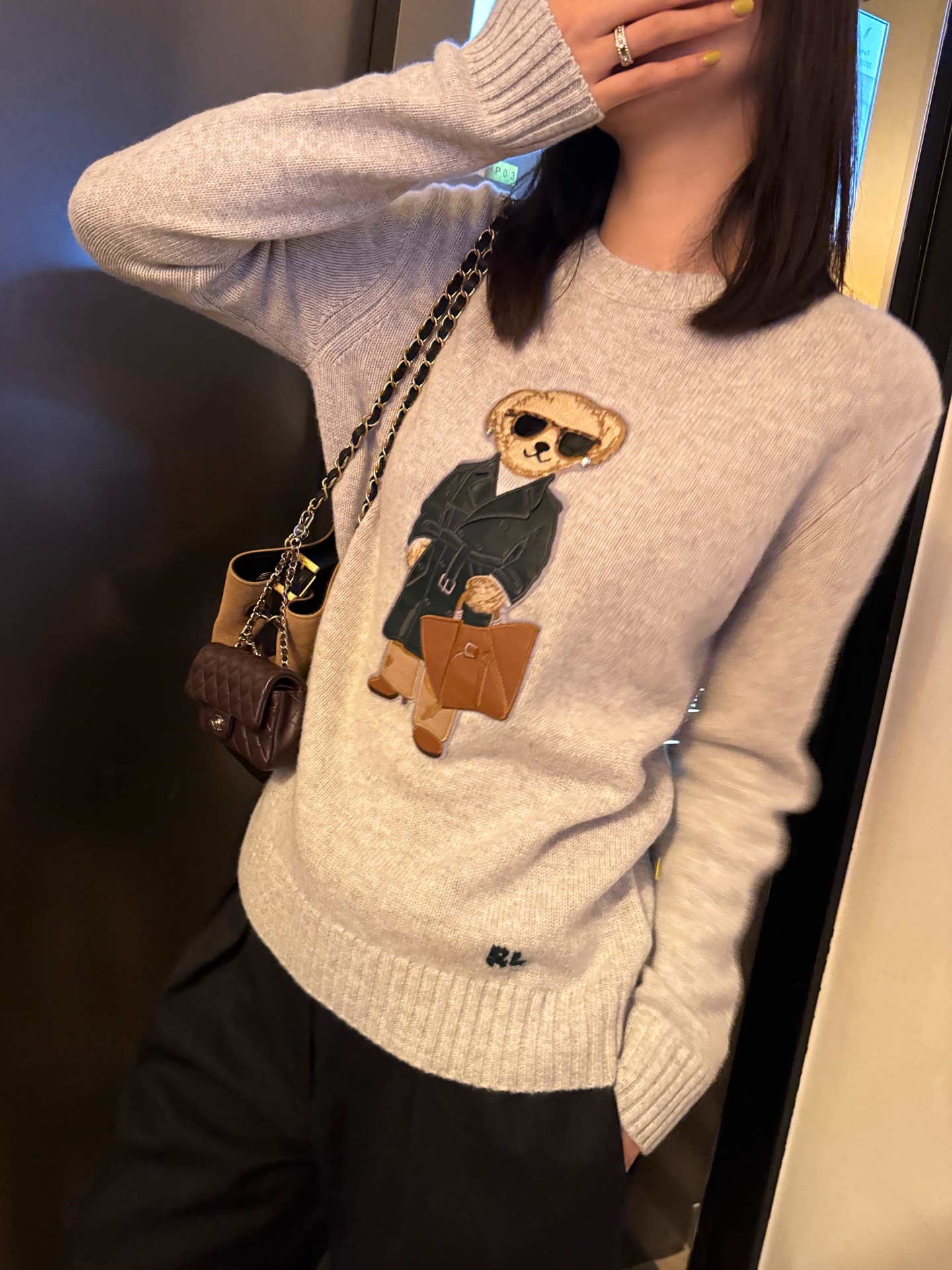 2025秋冬新品 Ralph Lauren 拉夫勞倫 灰色墨鏡小熊針織衫 優雅時尚, 精品設計