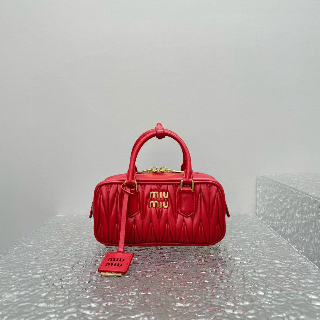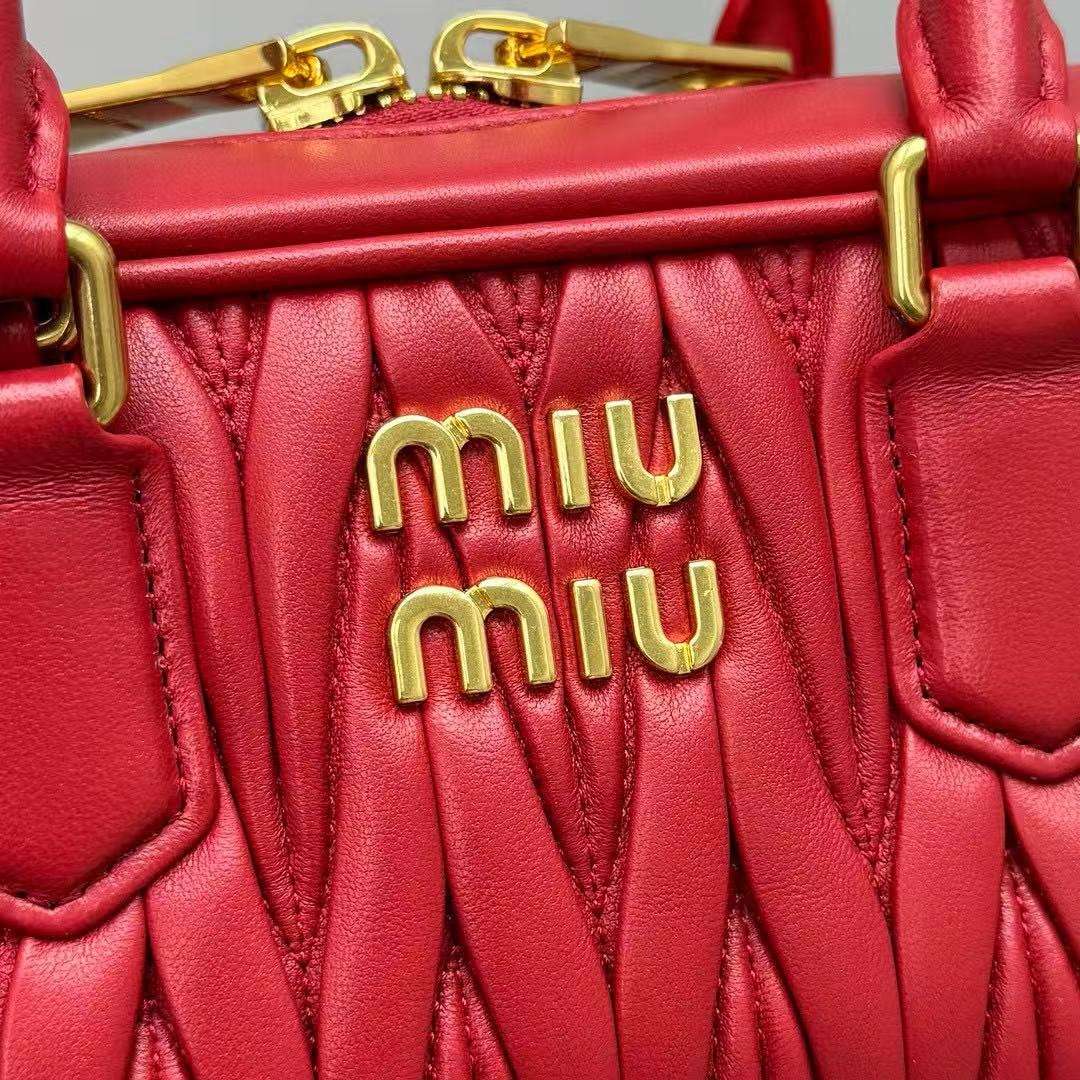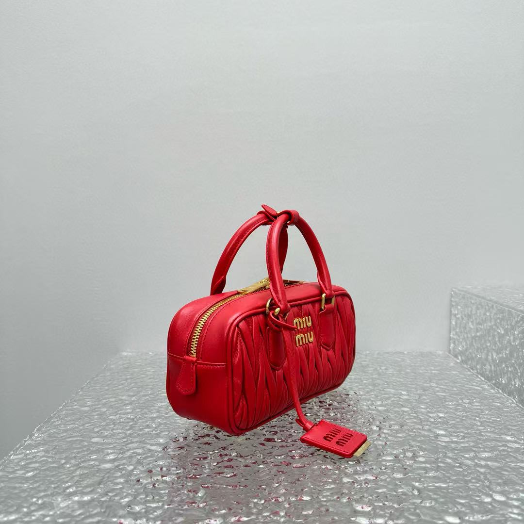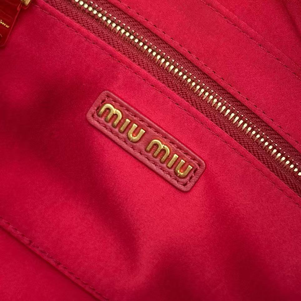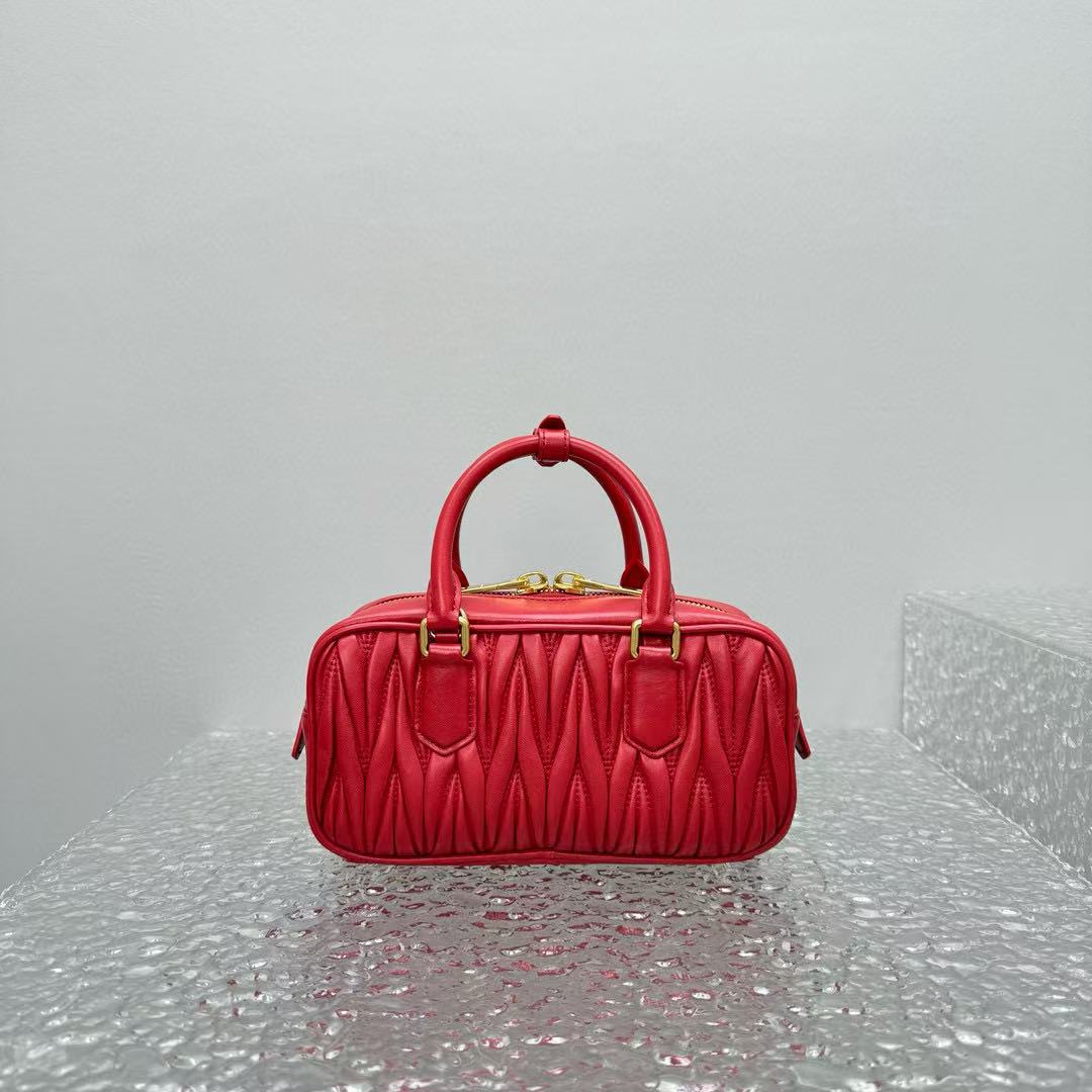 社團特惠活動-MIUMIU 紅色羊皮紋理保齡球包(小號)