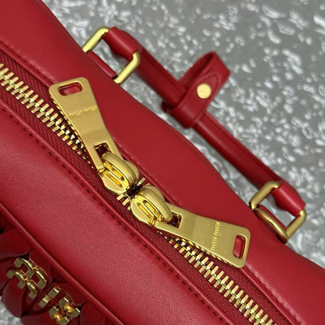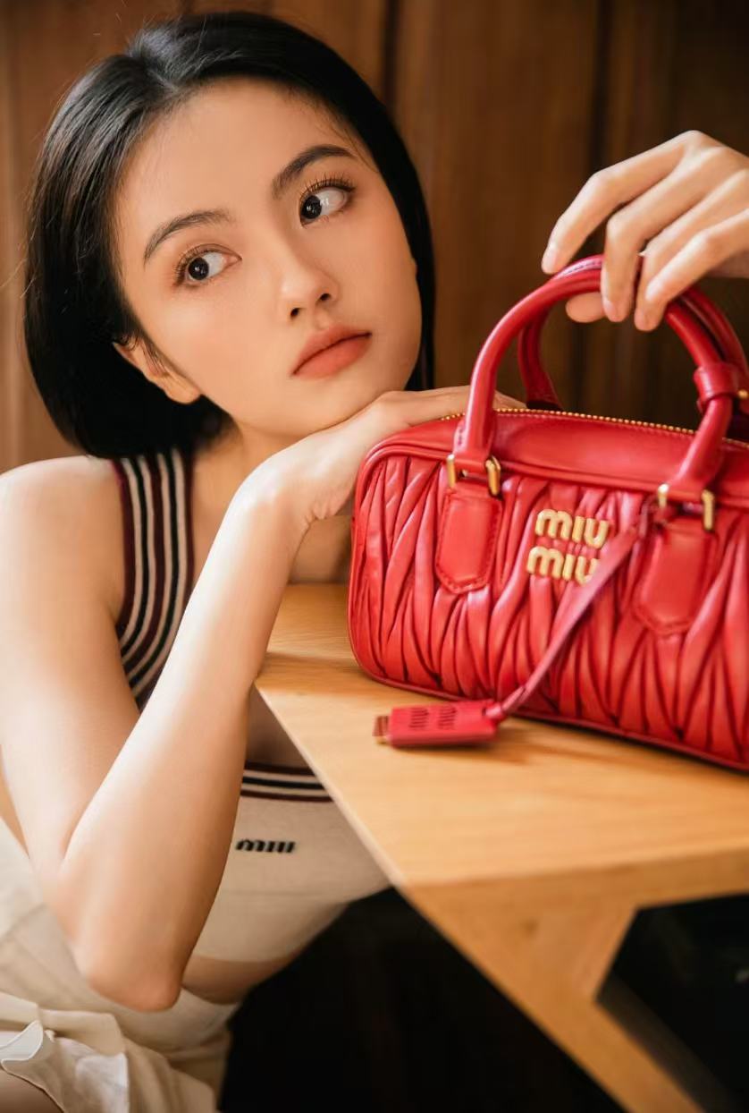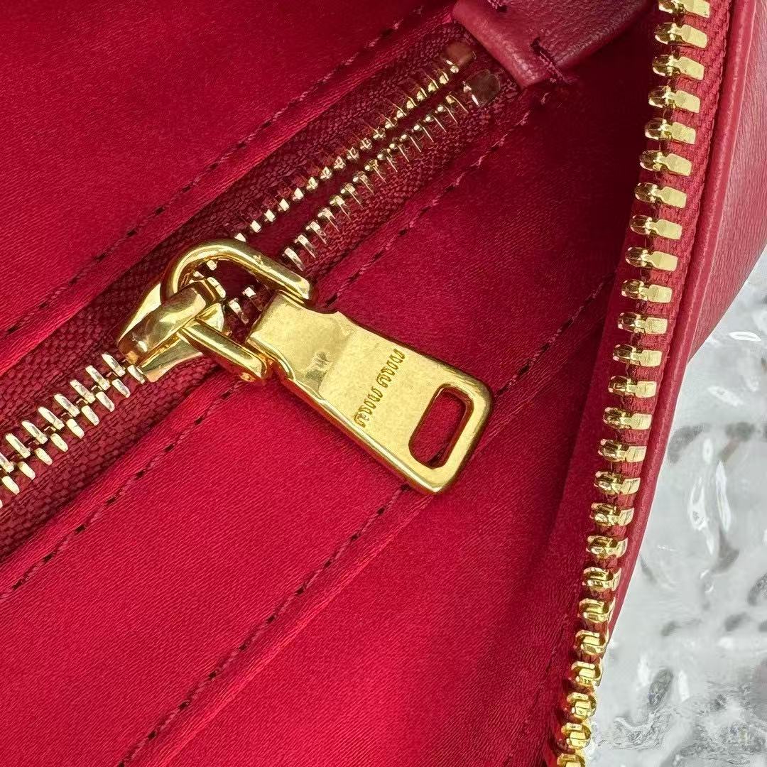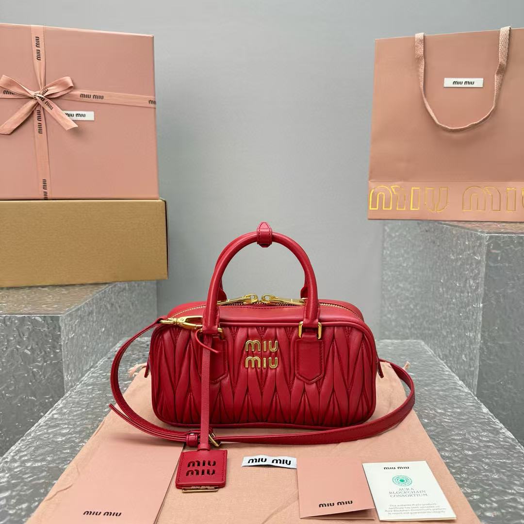 社團特惠活動-MIUMIU 紅色羊皮紋理保齡球包(小號)