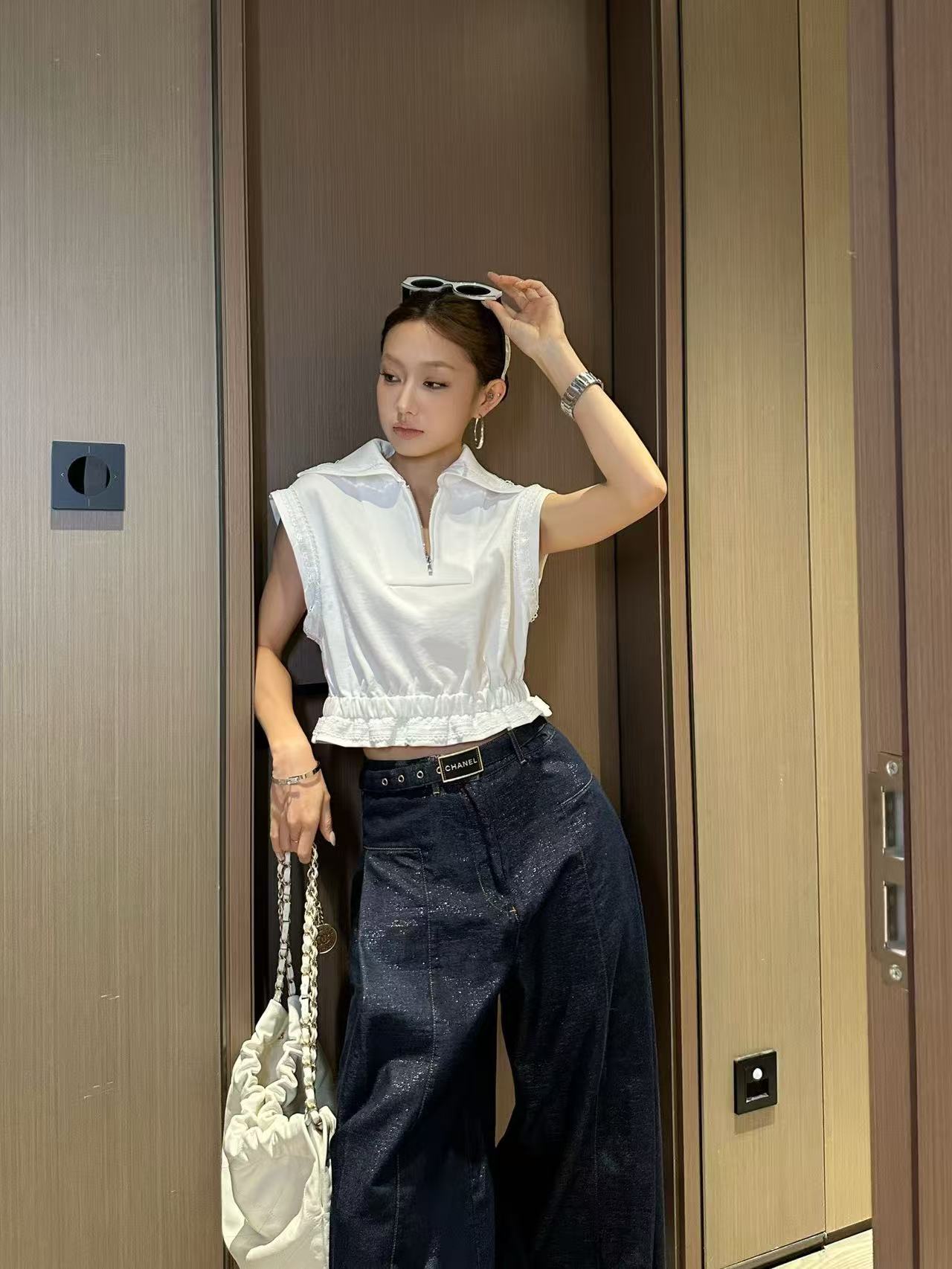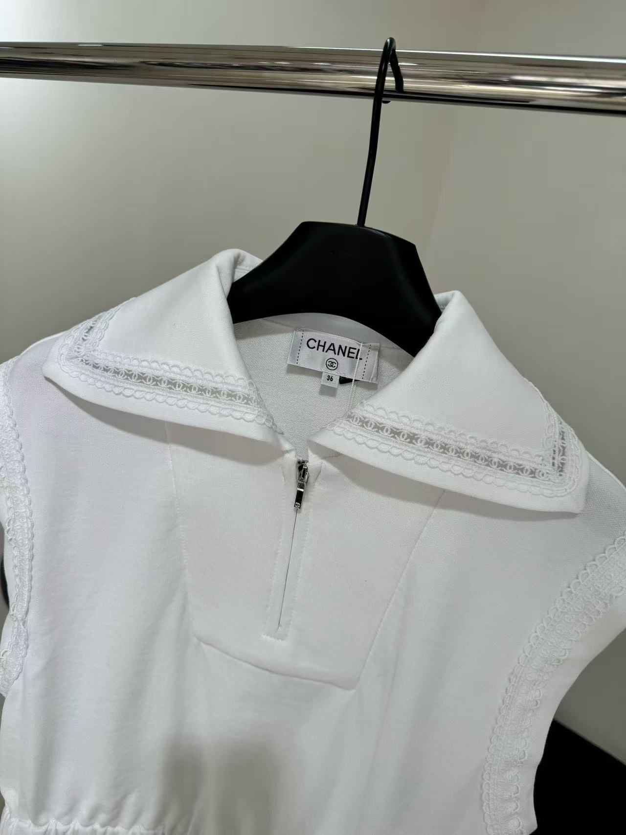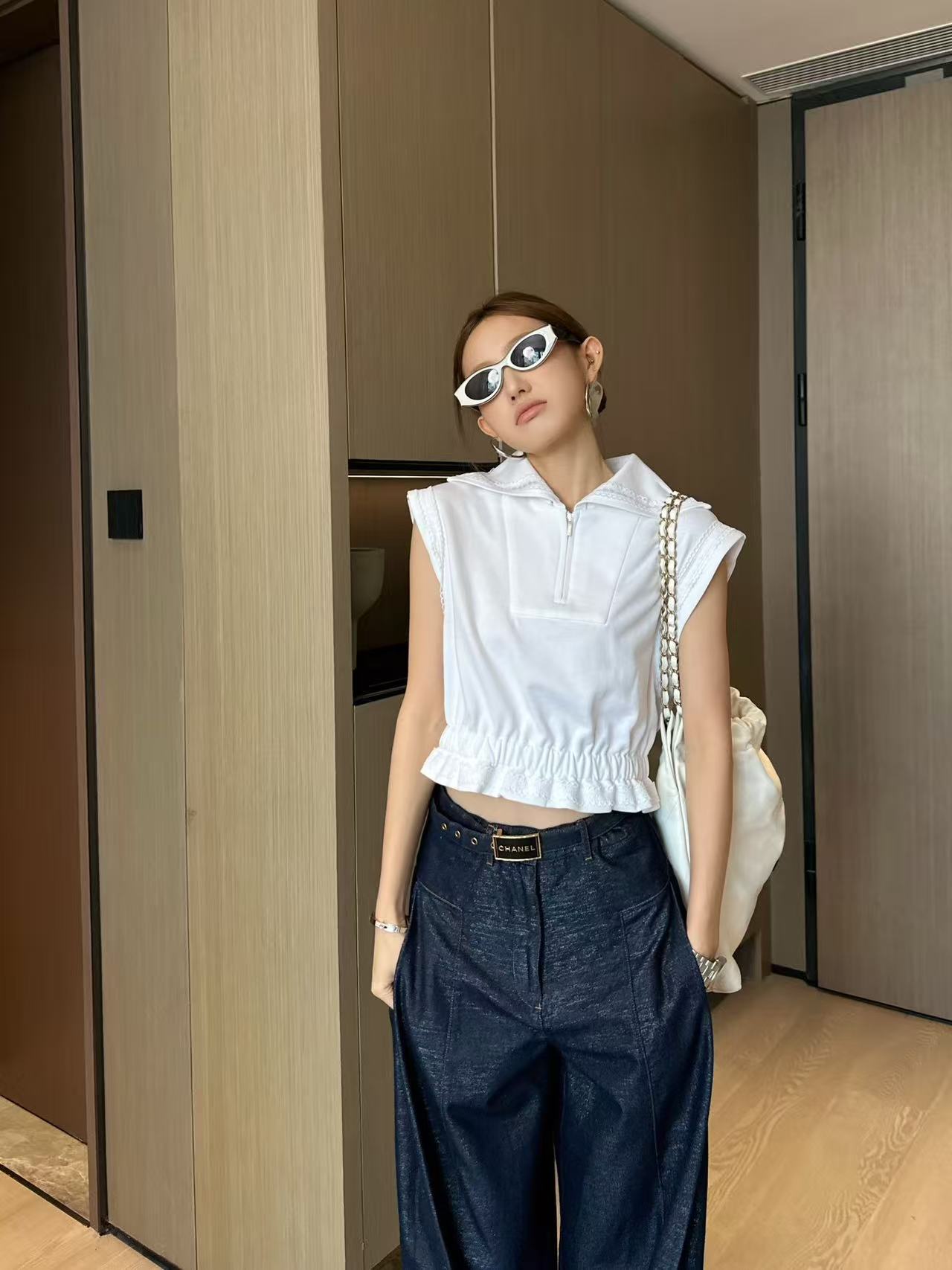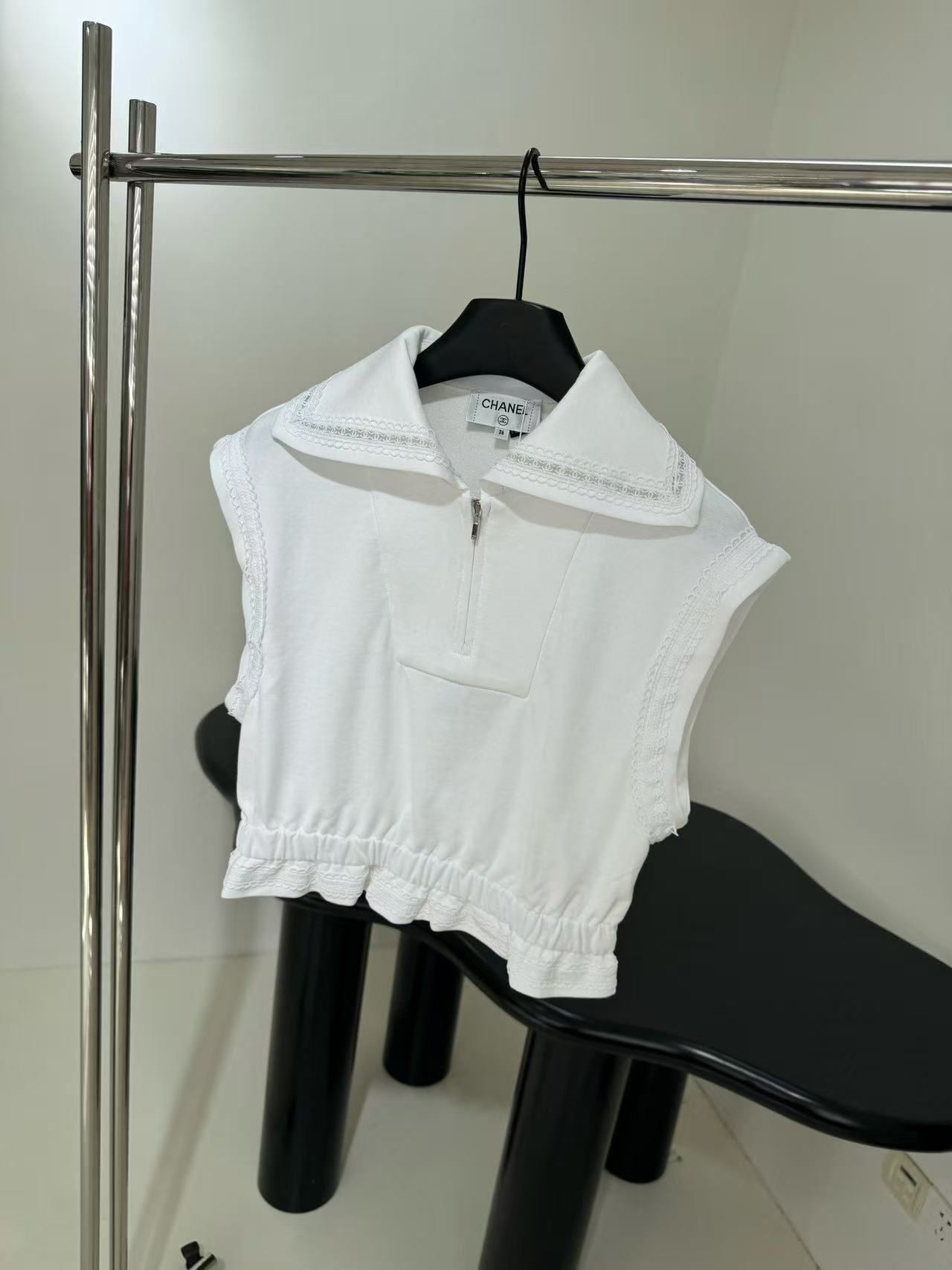 社團重磅福利款-Chanel 半拉鍊字母鏤空花邊背心 精品 复刻
