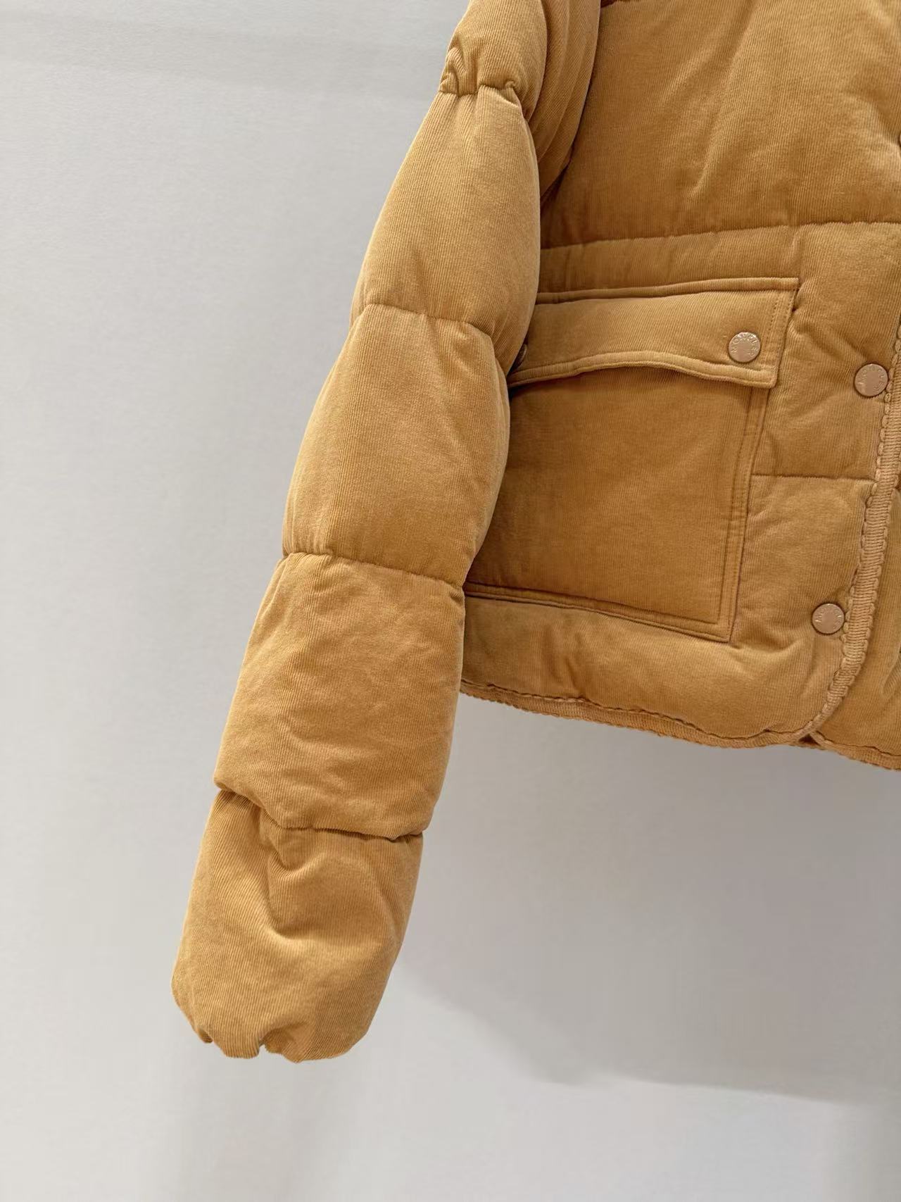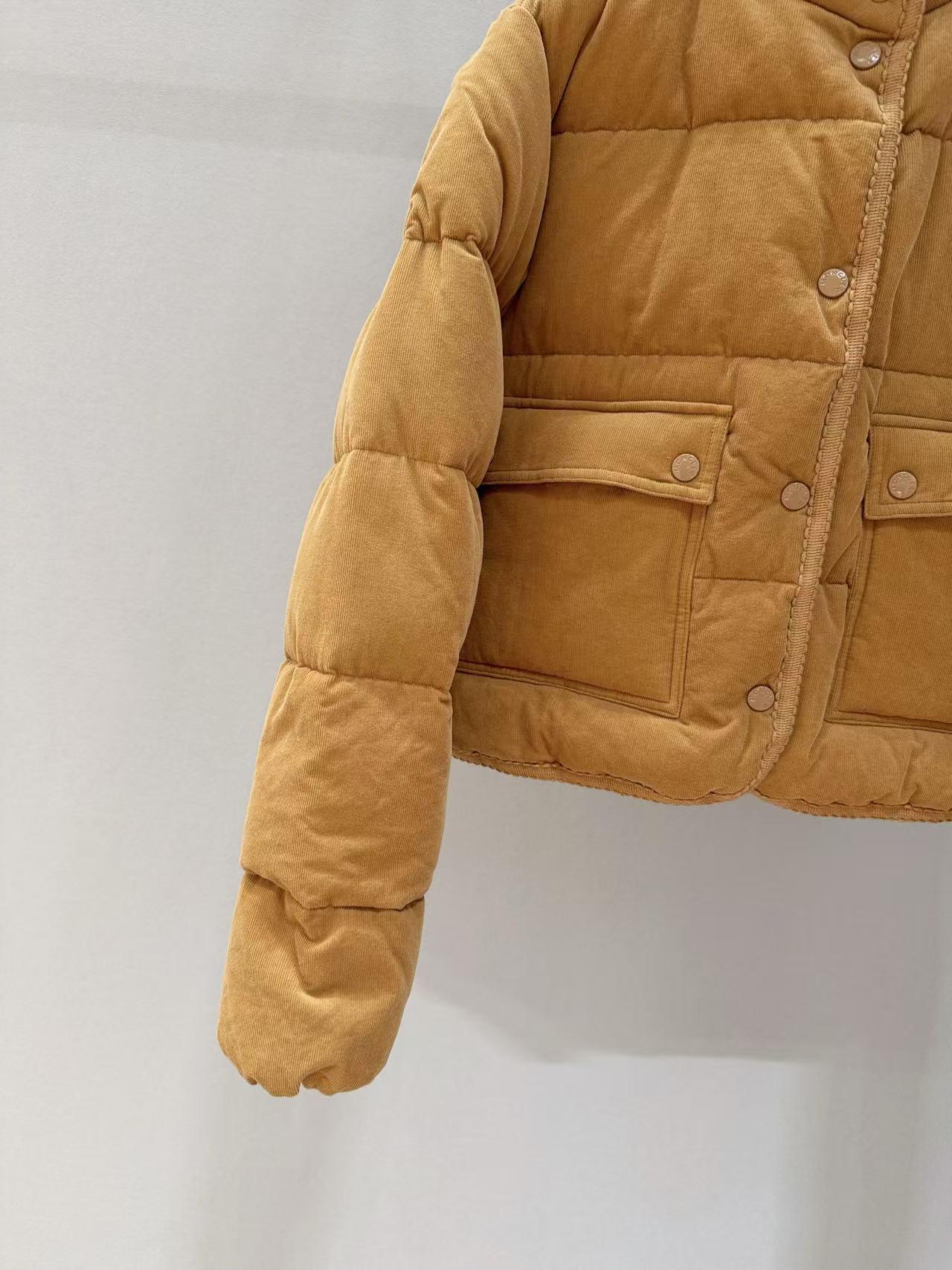 美拉德色系加上燈芯絨材質的細膩溫度,這件羽絨服絕對是秋冬衣櫥裡的首選。