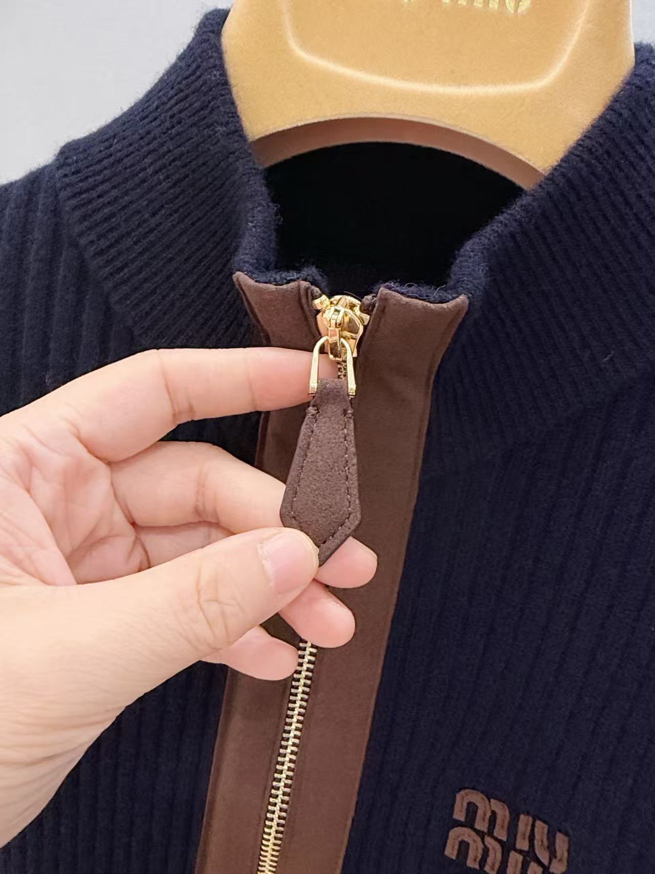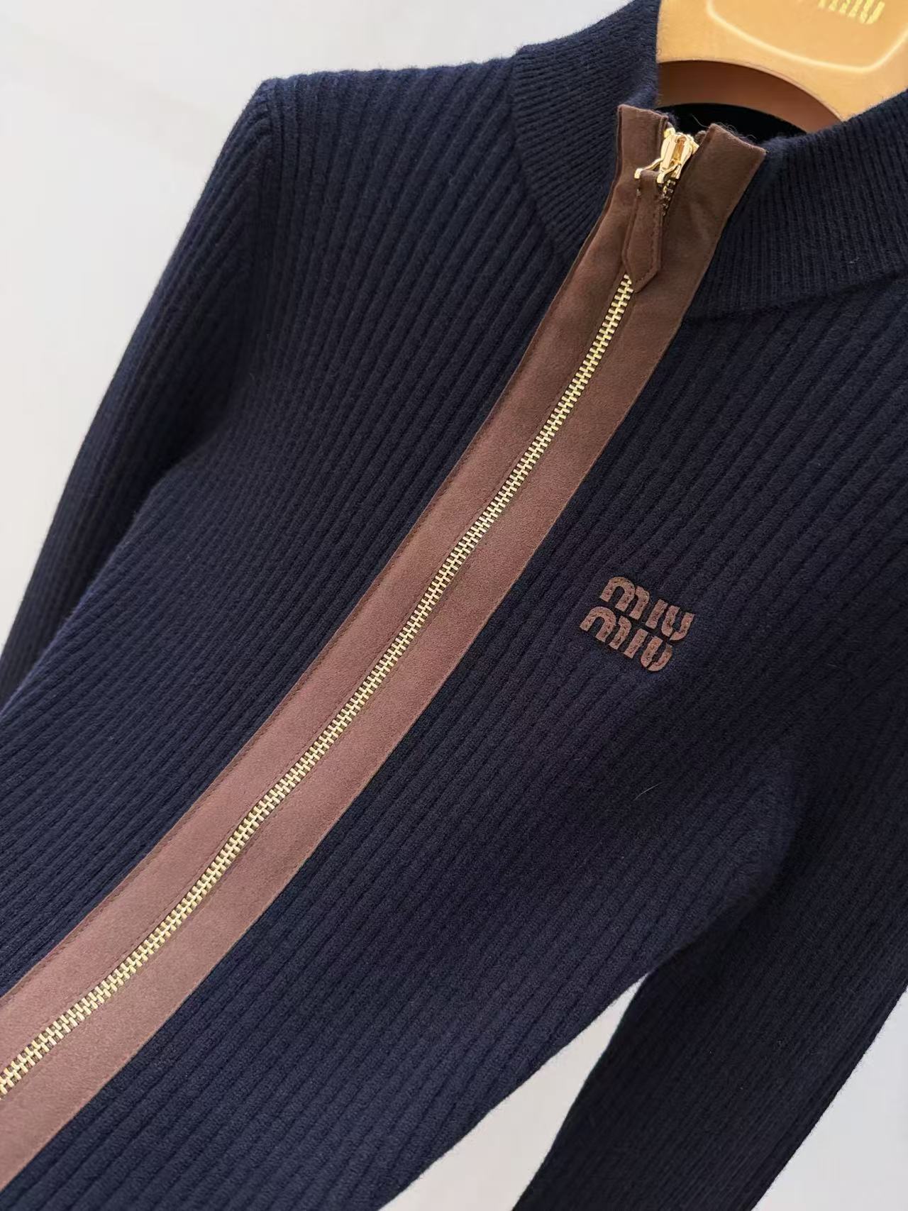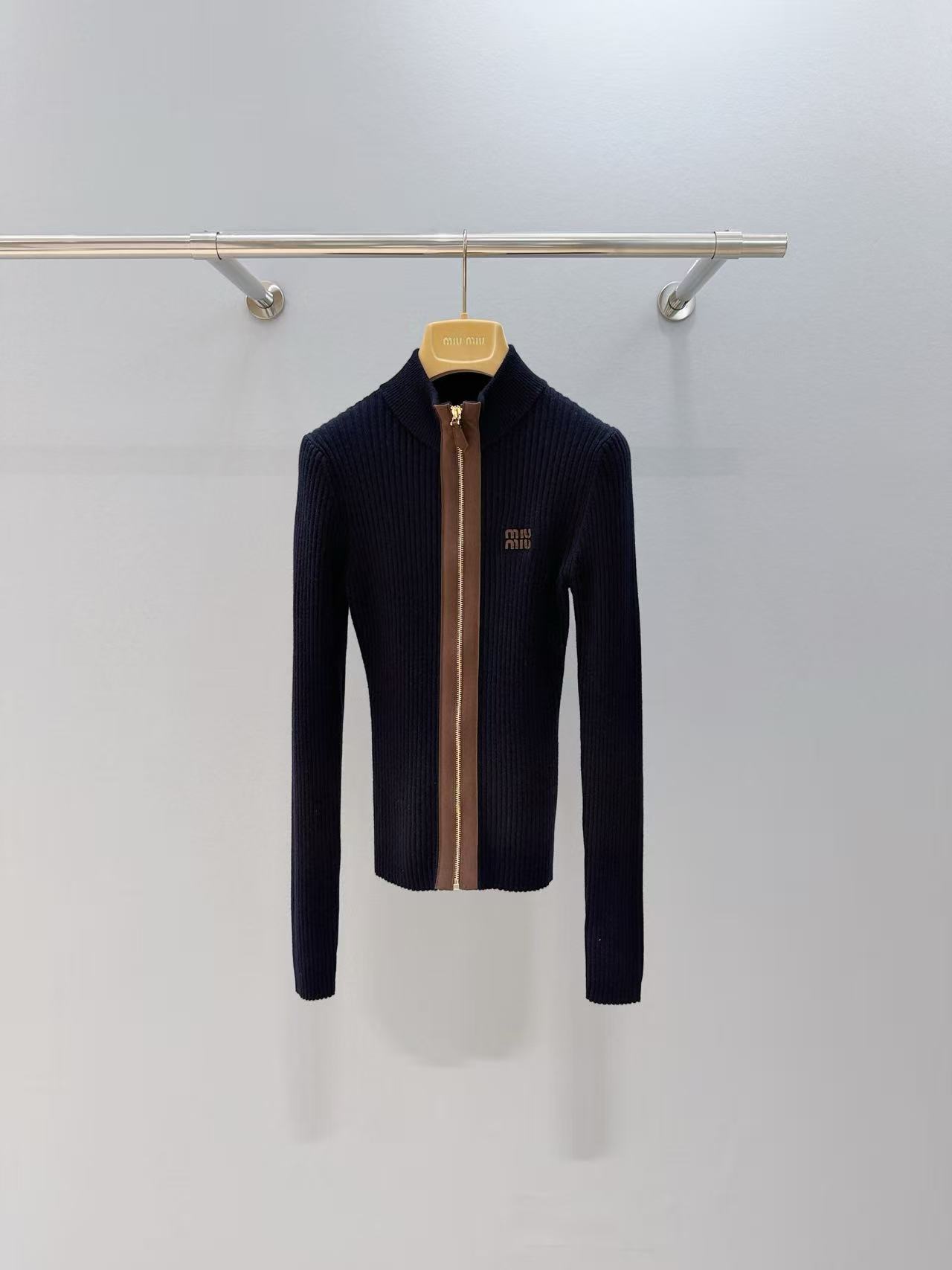 2025早秋 MIU MIU 字母Logo立領拉鍊針織開衫 高仿 精品