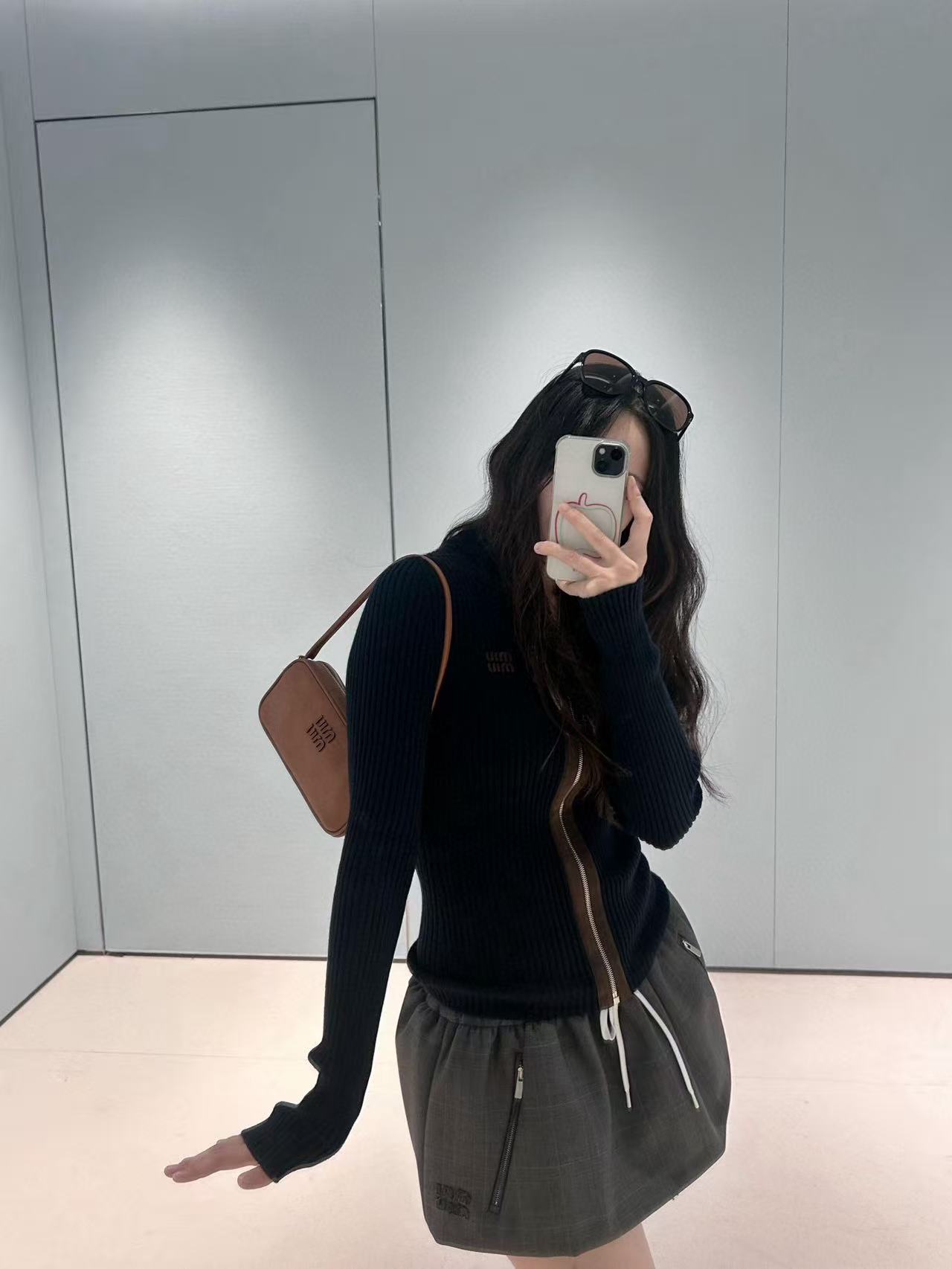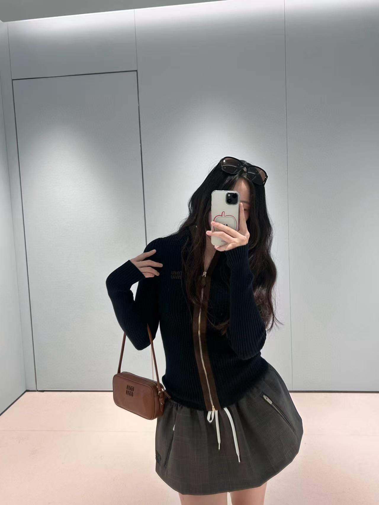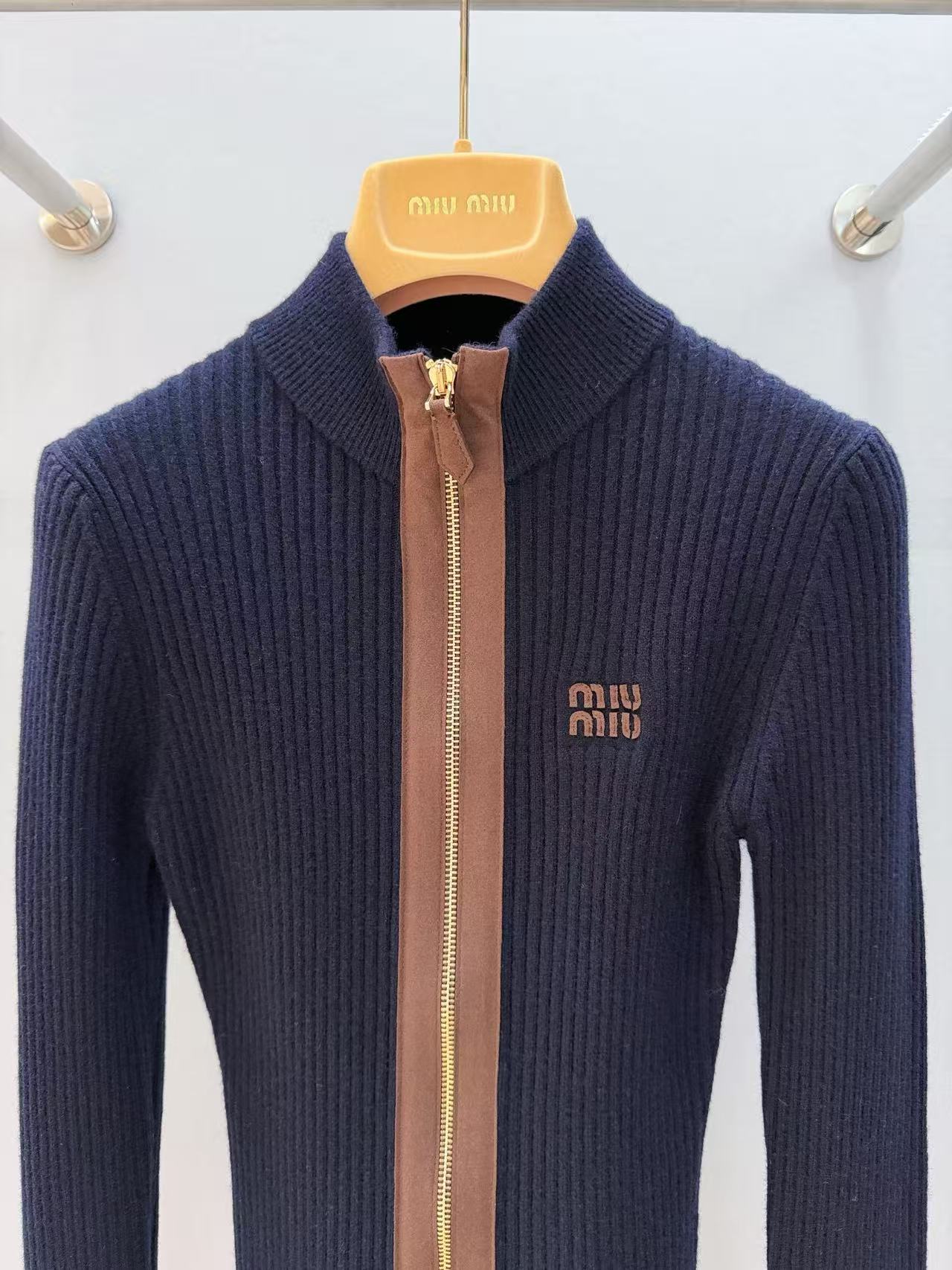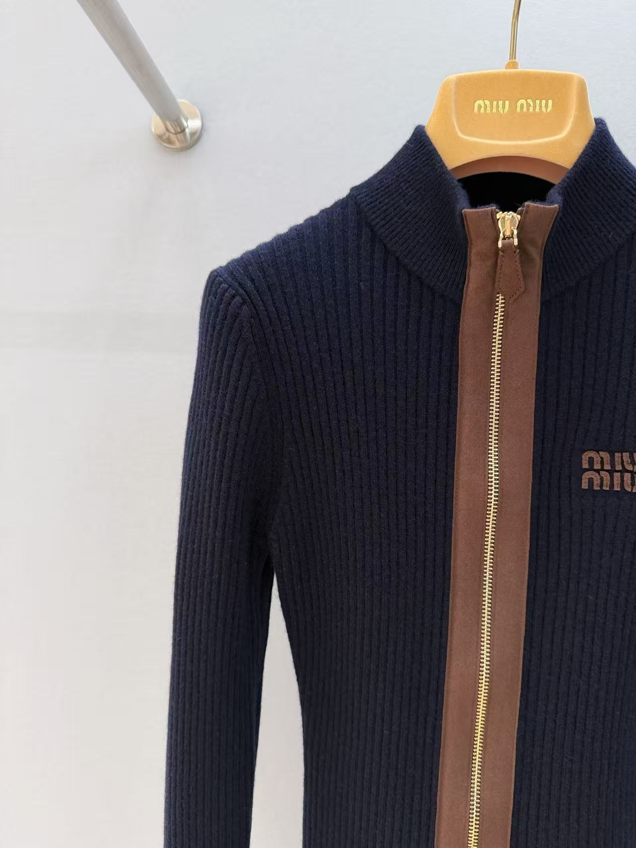 2025早秋 MIU MIU 字母Logo立領拉鍊針織開衫 高仿 精品