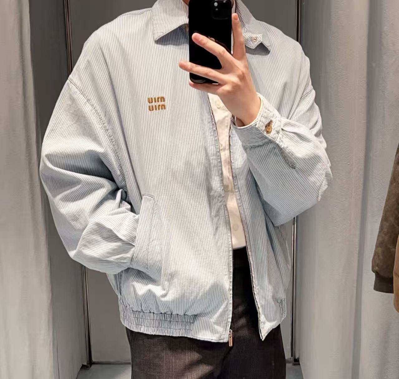 2025早秋新品 MIU MIU 豎條紋翻領夾克 精品 時尚