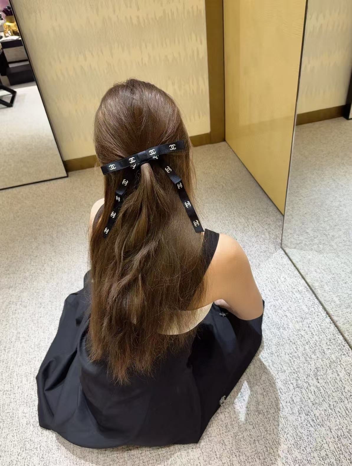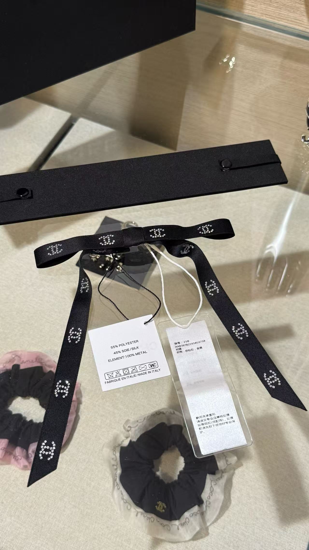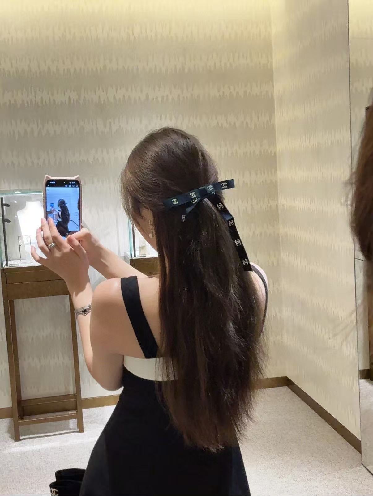 2025早秋 Chanel 滿鑽小雙C緞帶蝴蝶結髮夾 高仿 精工