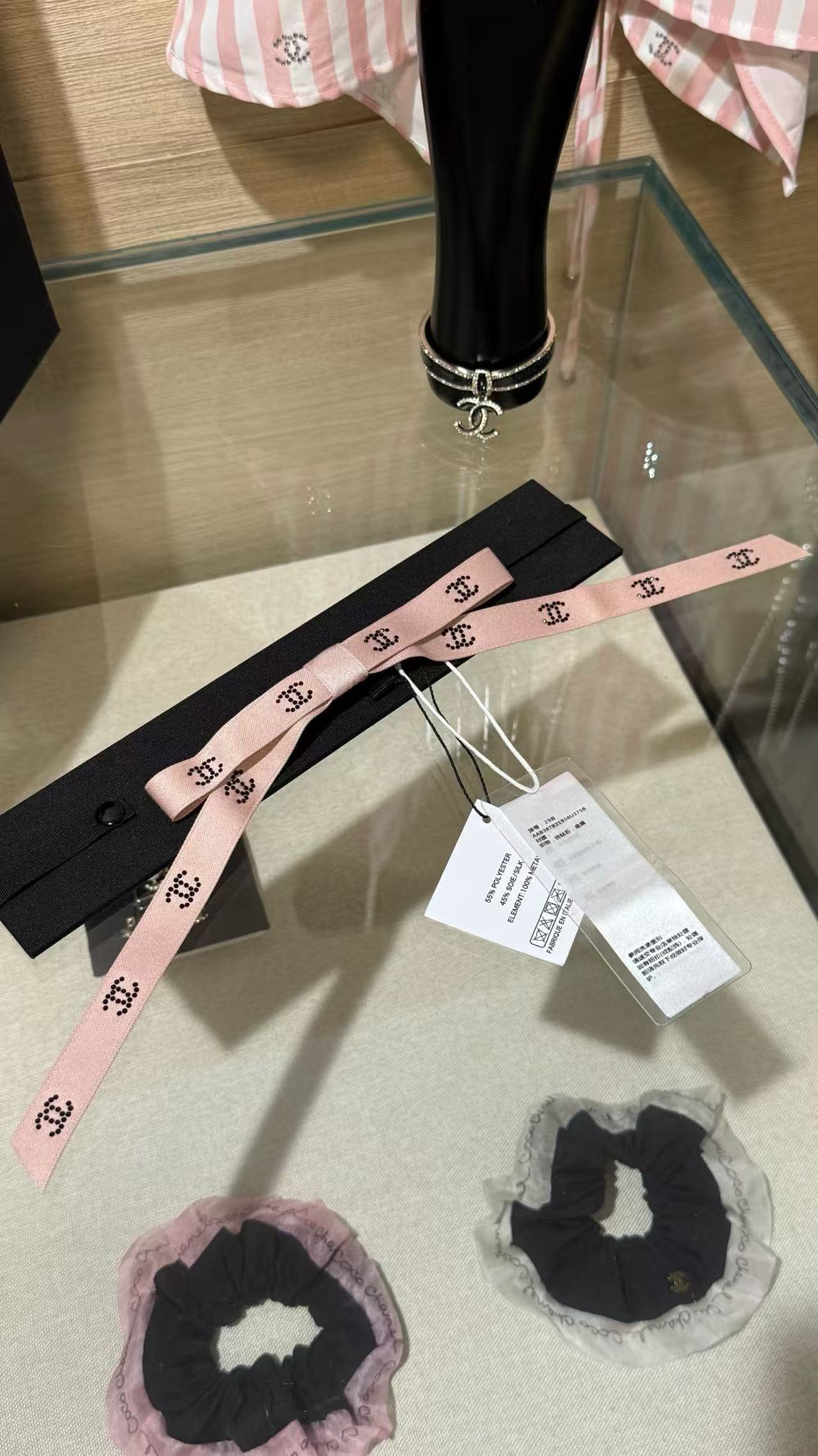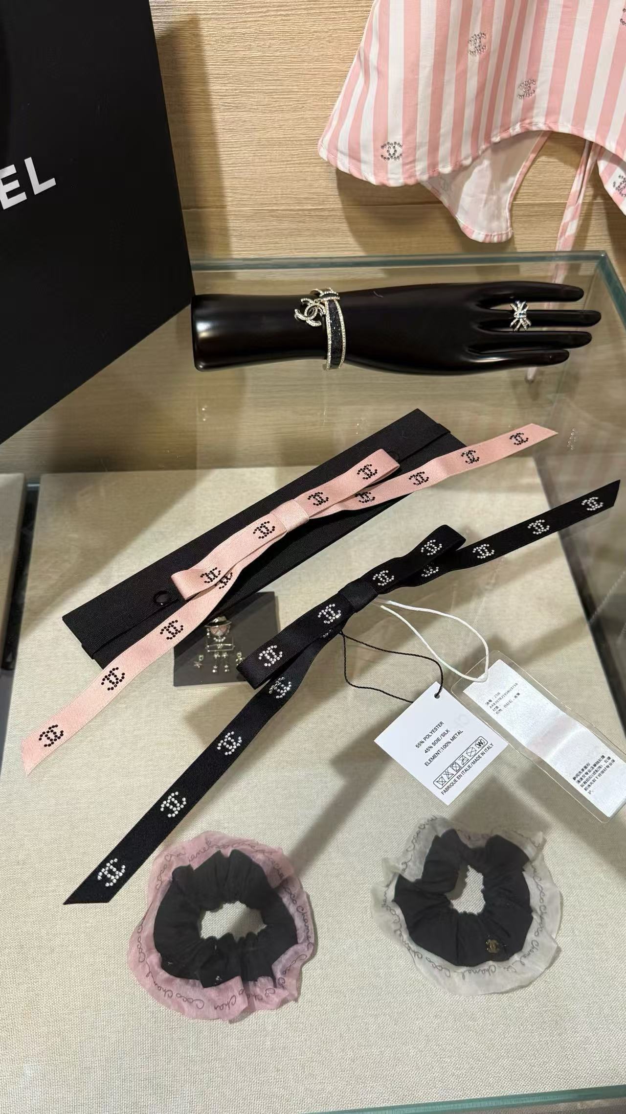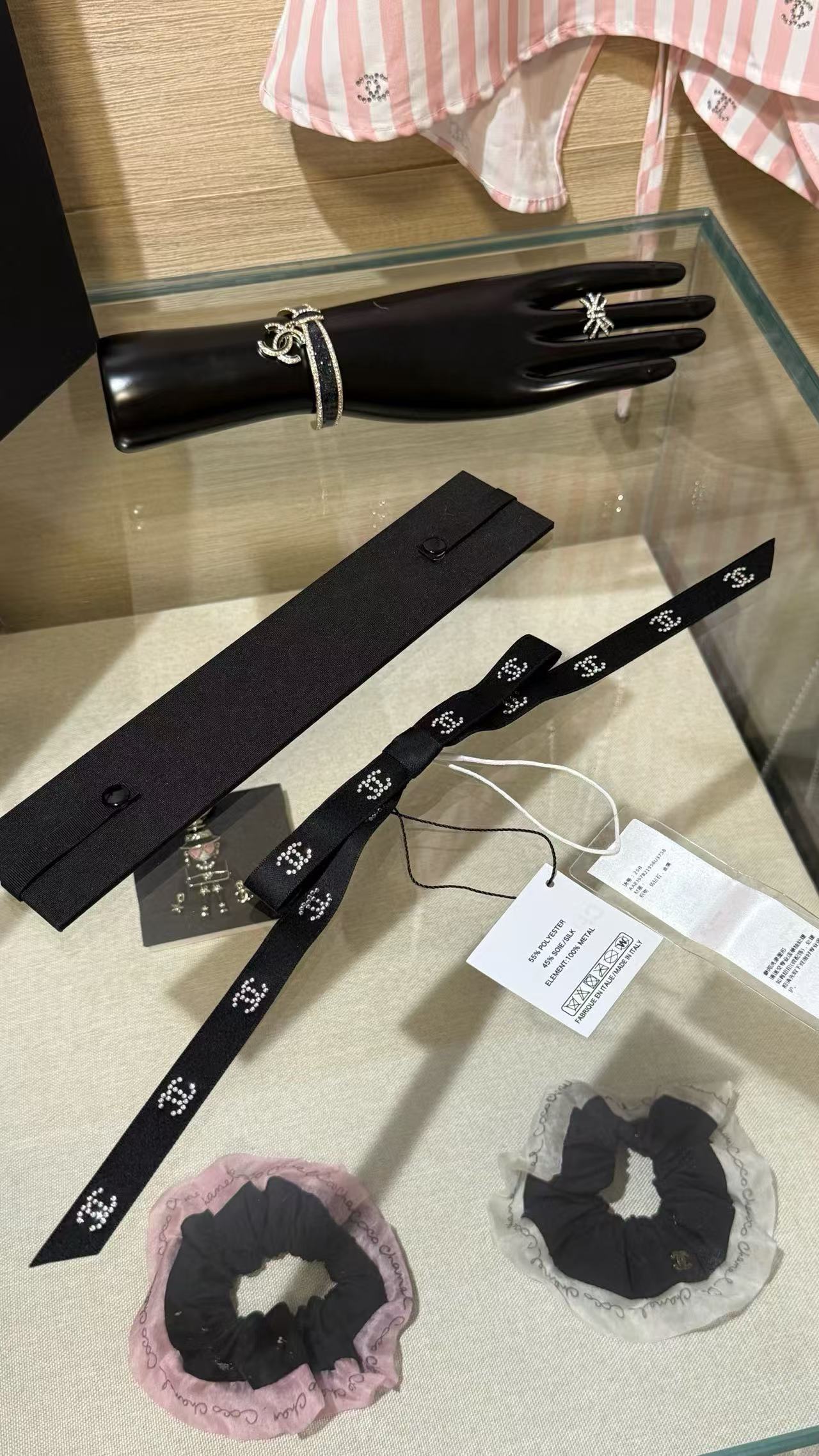 2025早秋 Chanel 滿鑽小雙C緞帶蝴蝶結髮夾 高仿 精工