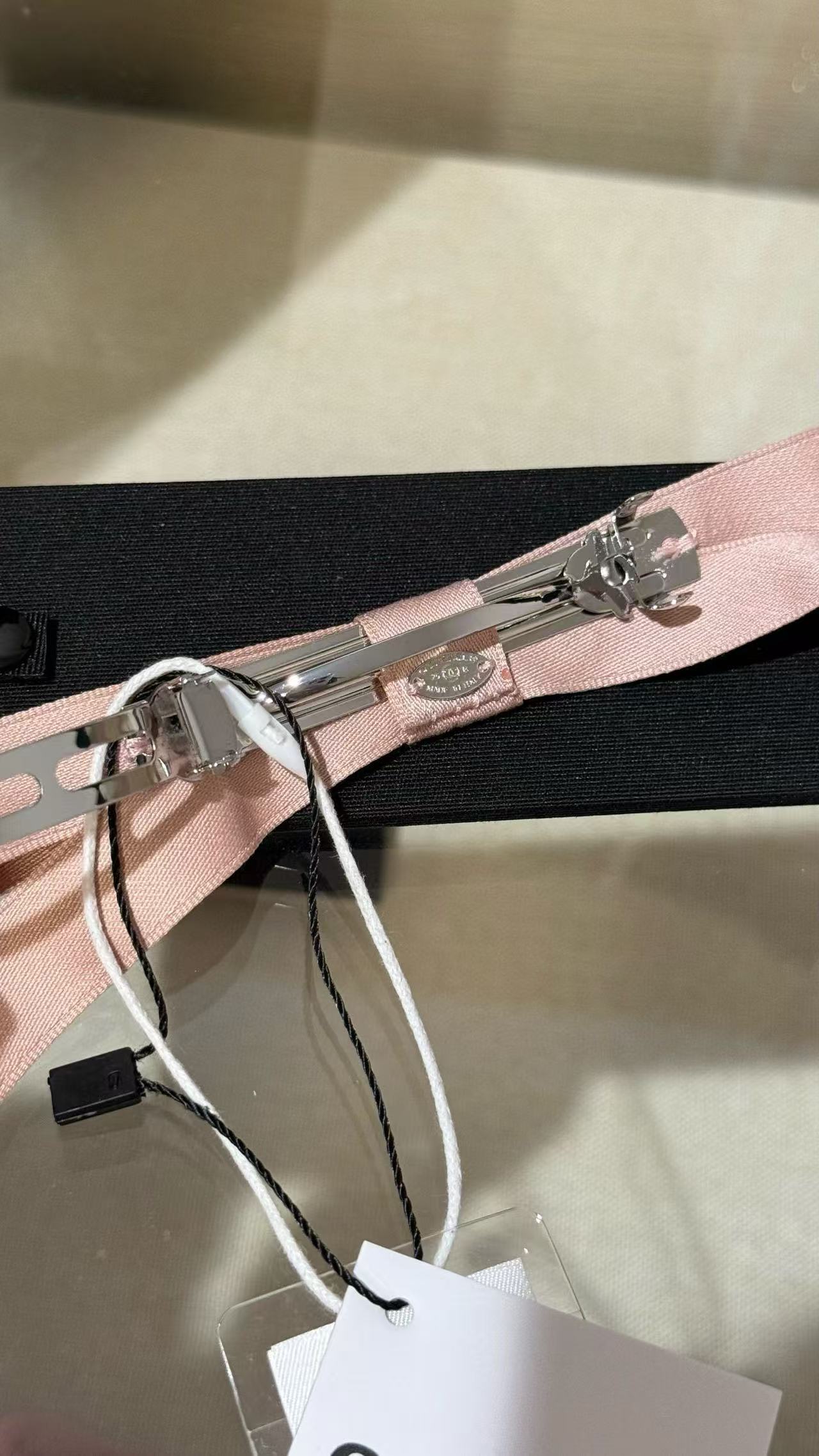 這款蝴蝶結髮夾真的是滿滿的夢幻氣息!粉嫩緞帶搭配滿鑽小Logo點綴,甜美中帶點貴氣,完全是提升造型的秘密武器。