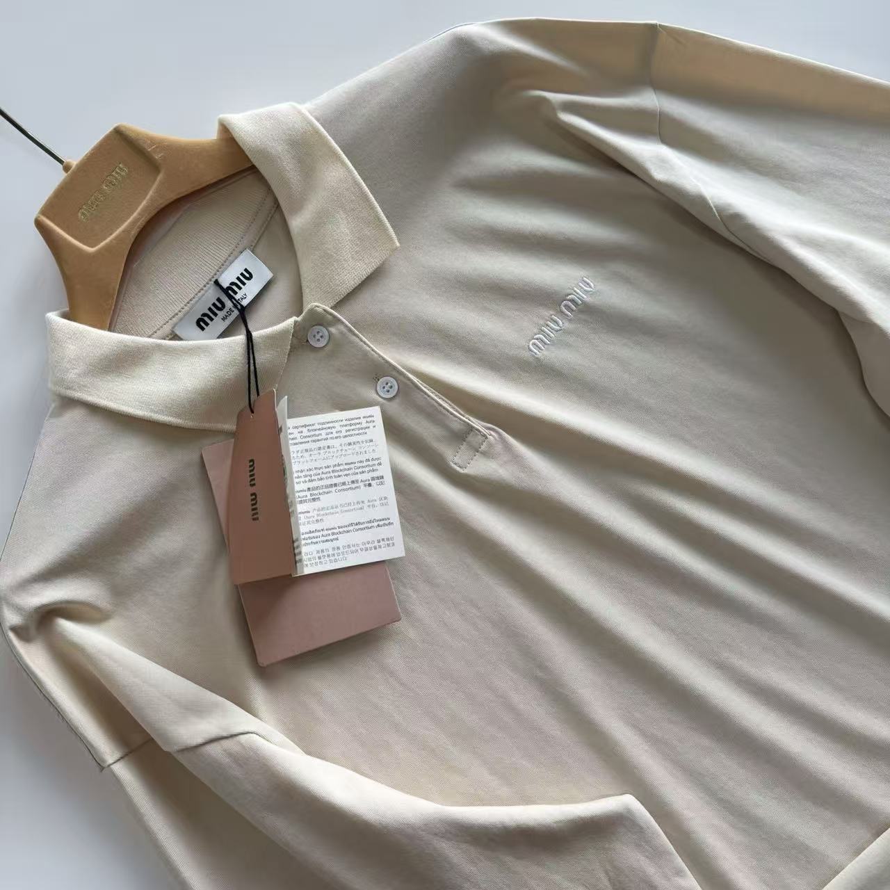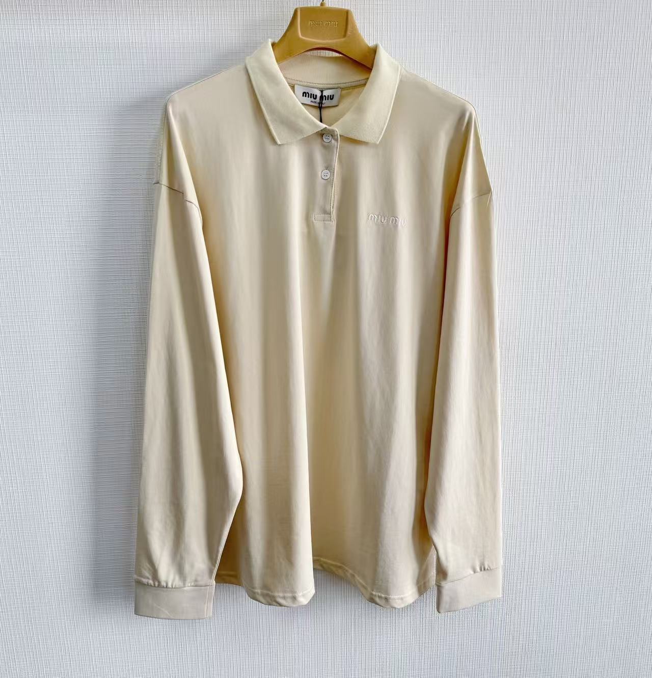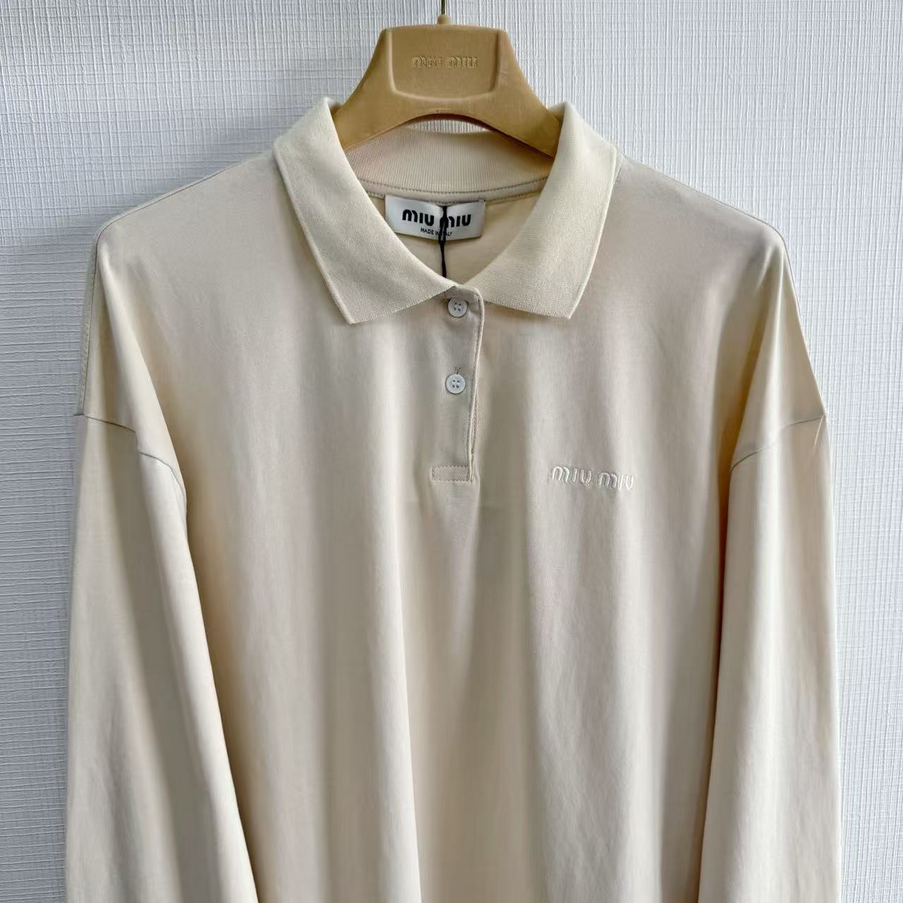 2025早秋新品 MIU MIU 字母刺繡長袖polo衫 精品 時尚