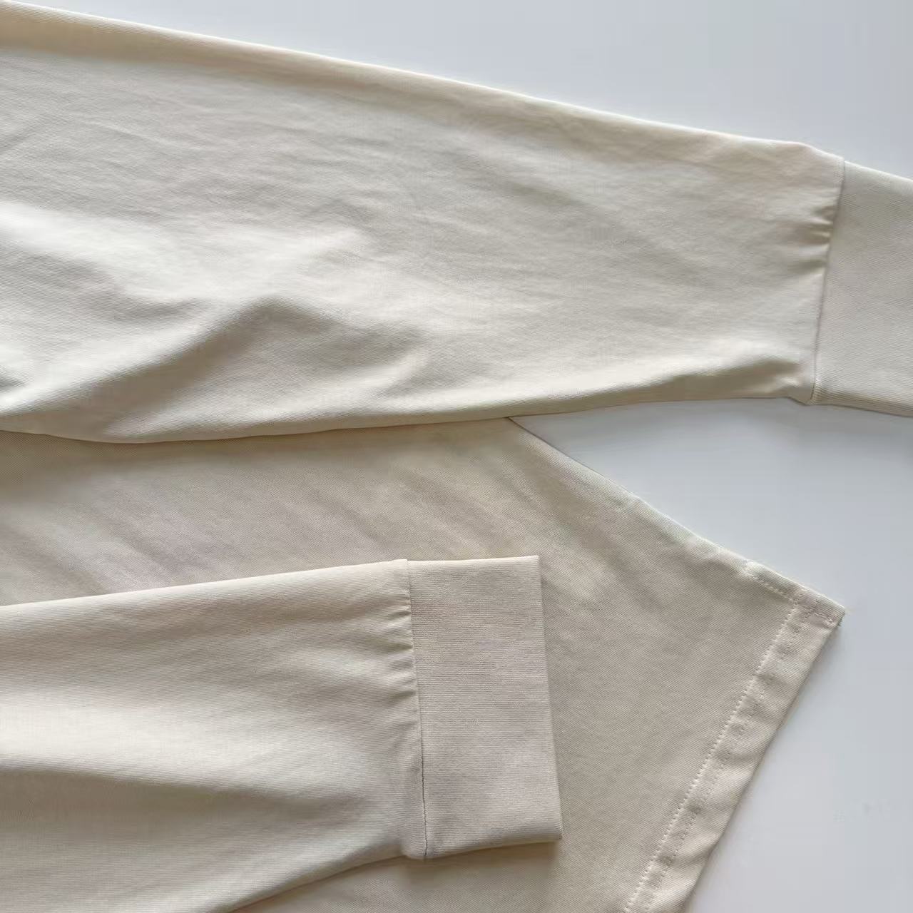 面料挑選 210g 21S 精棉珠地面料,觸感細膩柔軟,透氣又帶點微厚質感,穿上身舒適不悶熱。胸前字母刺繡是亮點,採用精密挨針繡工藝,針距緊密到不行,逐針勾勒出立體線條,圖案緊實又有微微收縮效果,遠看有層次、近看細節滿分,質感直接拉到專櫃等級,真的是奢侈品般的享受。