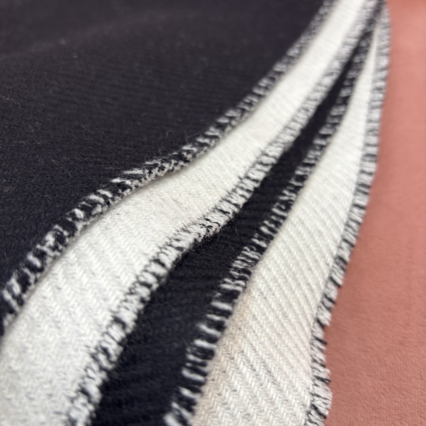 山羊絨賦予披肩極佳的保暖性與輕盈度,而羊毛則增添結構感與韌性,使整體垂墜自然又不易變形。