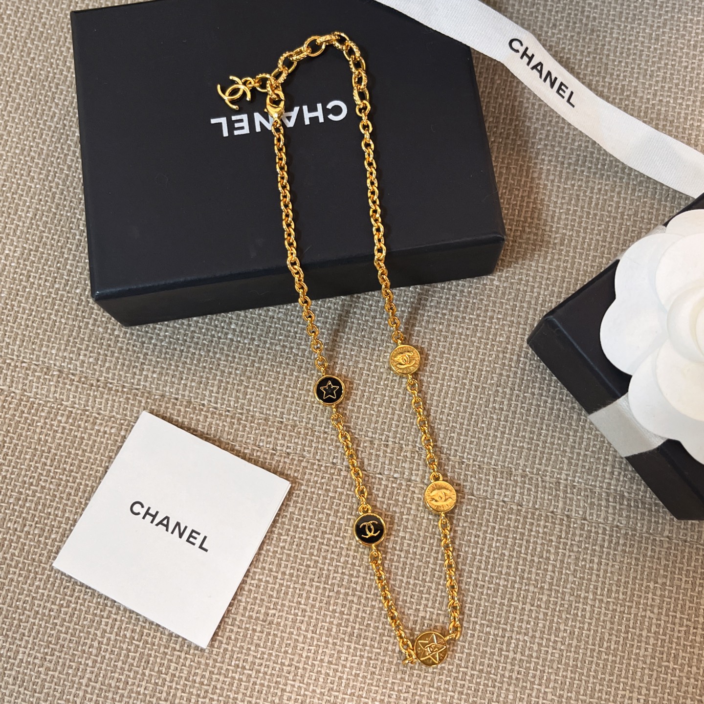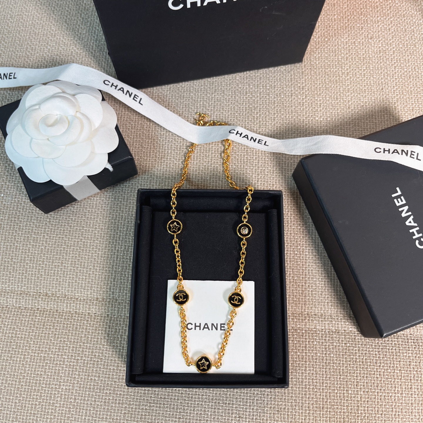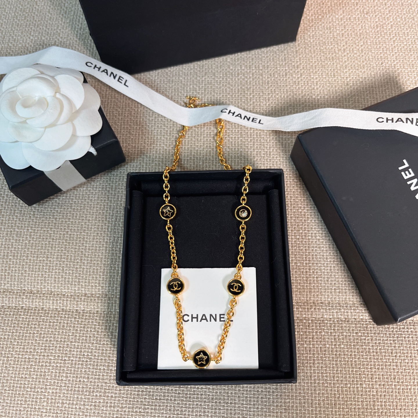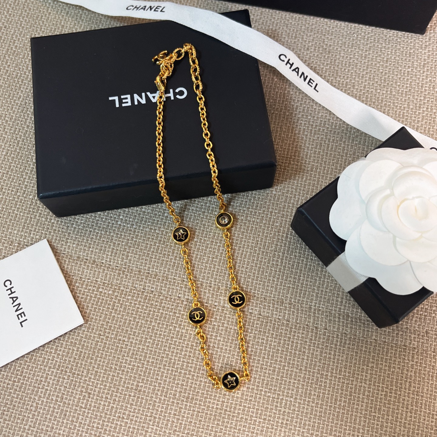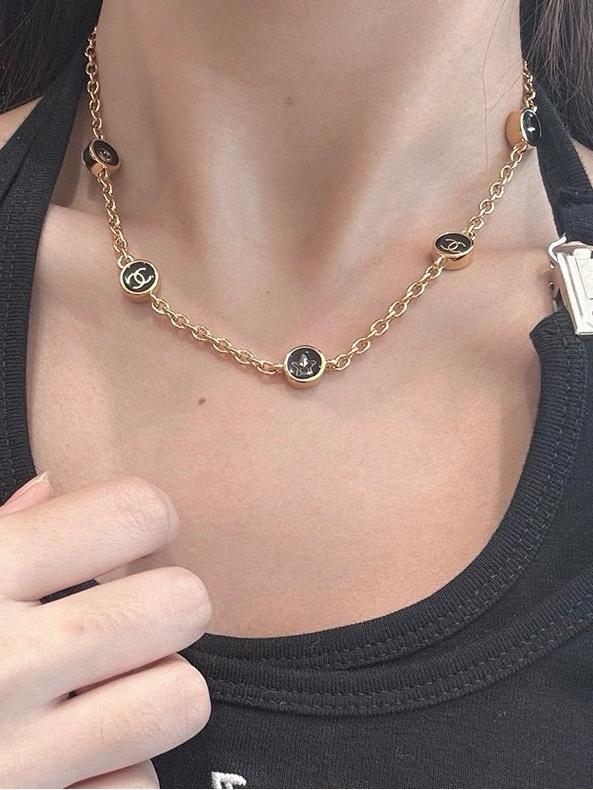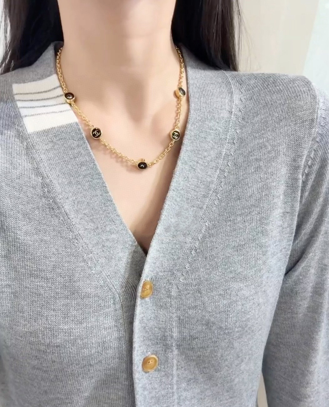 2025秋冬新品 Chanel 金邊小圓黑項鍊 精品 高仿