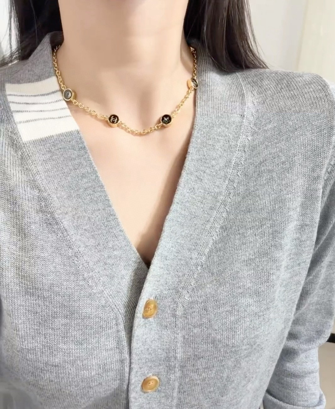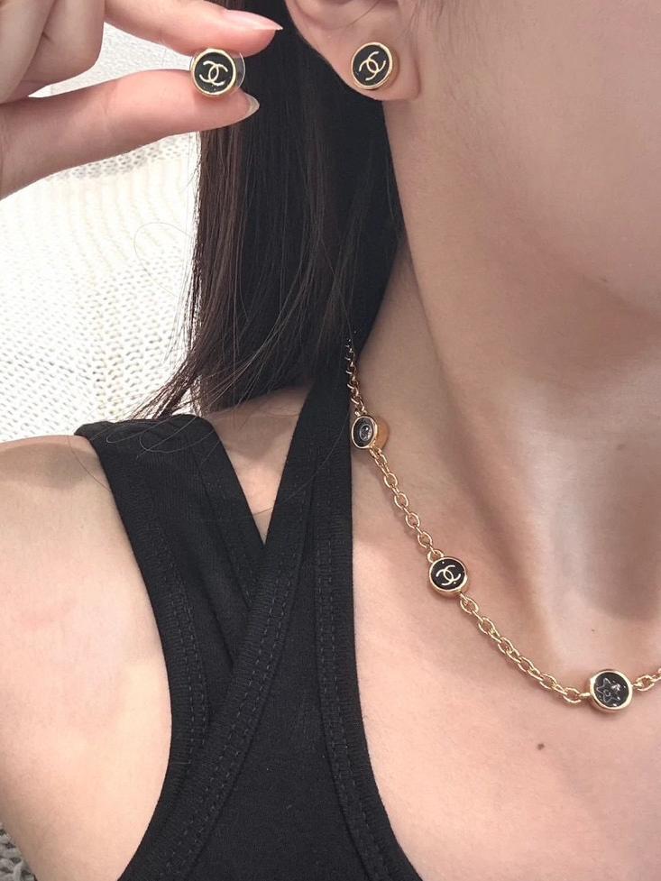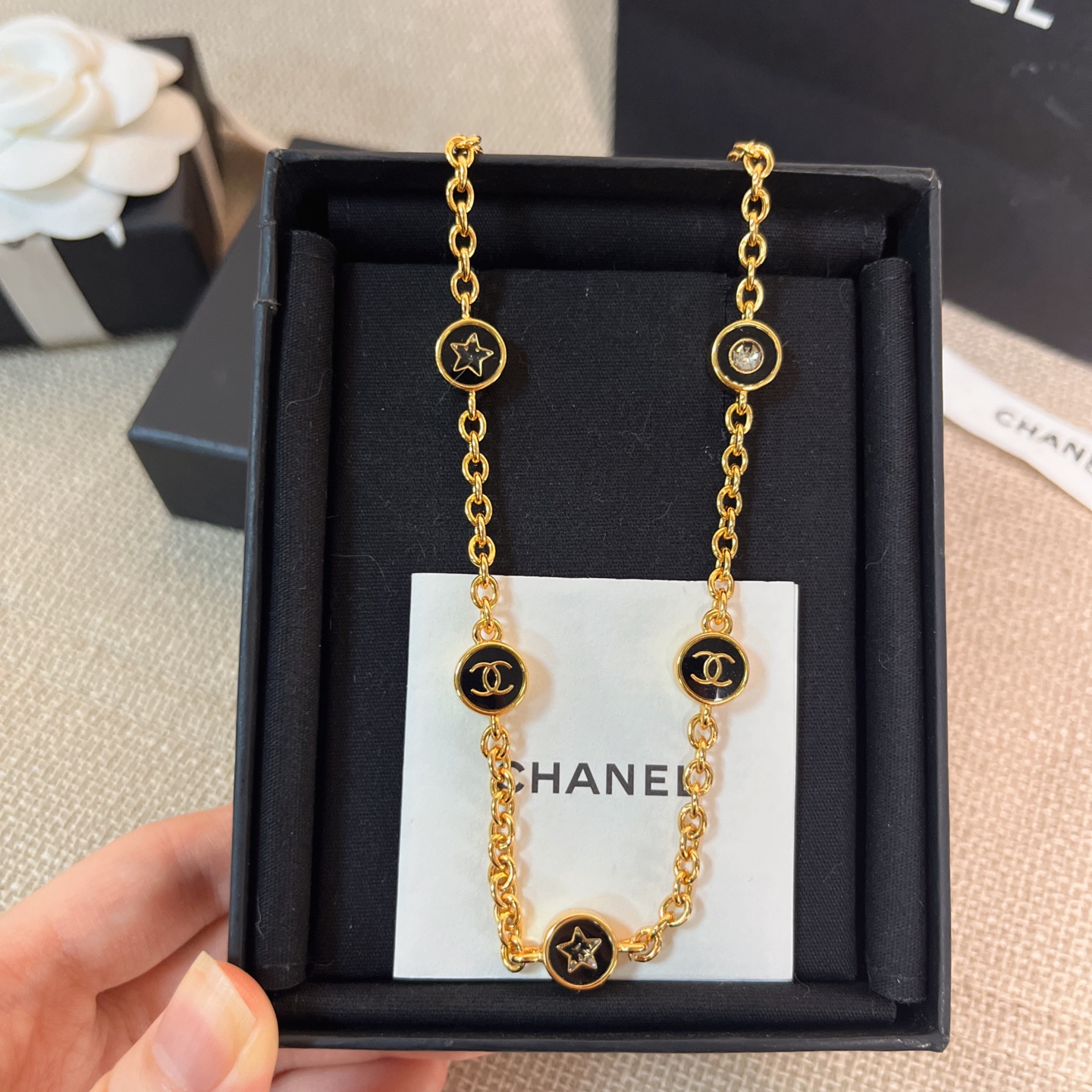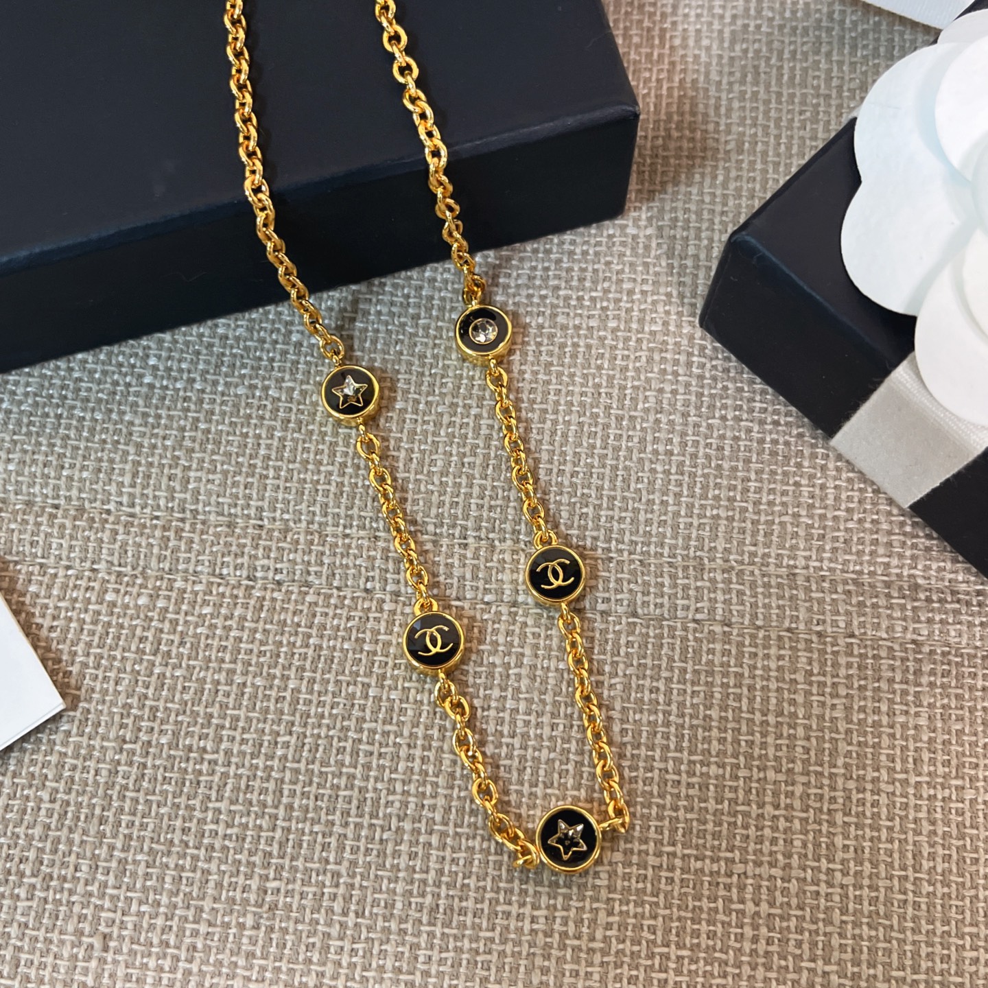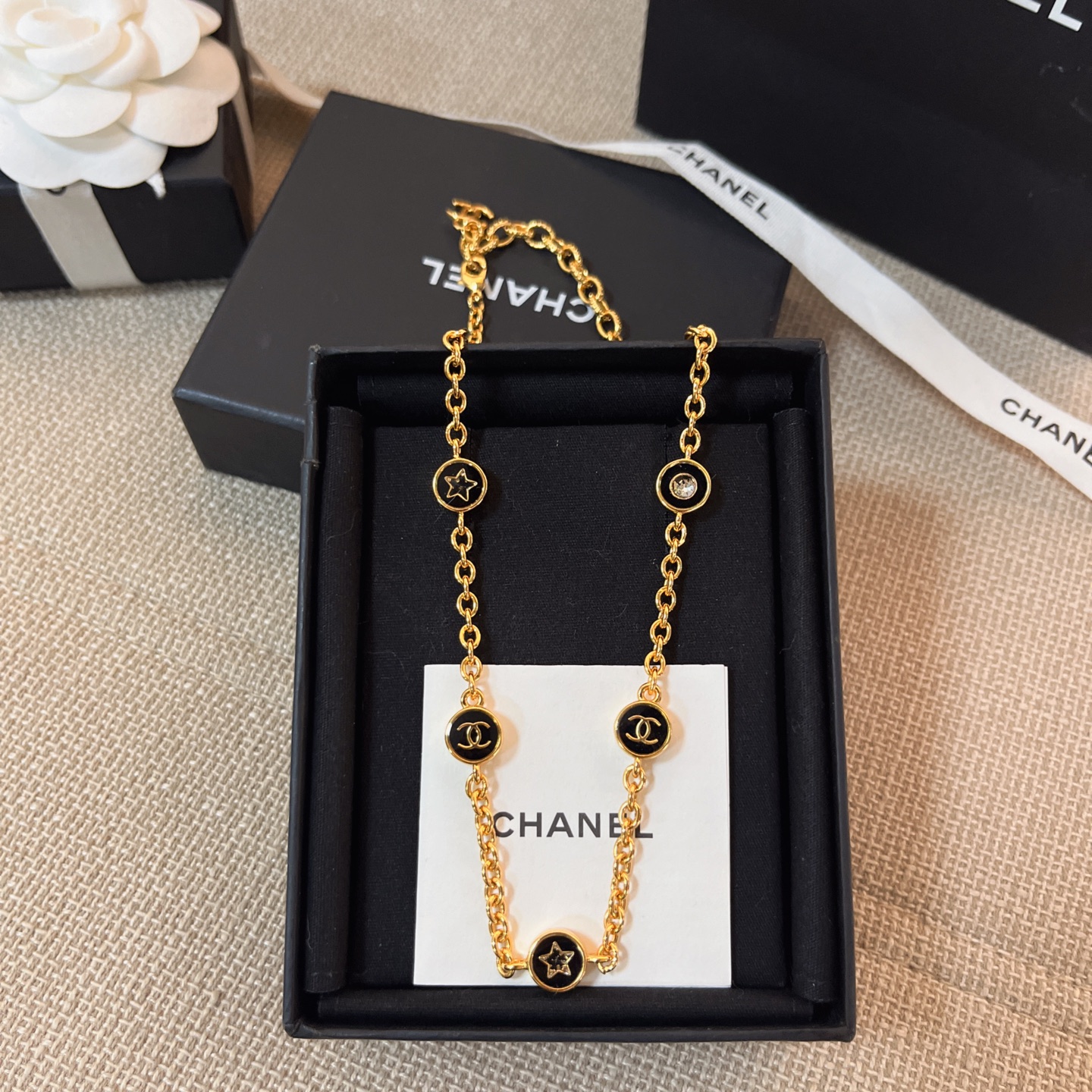 2025秋冬新品 Chanel 金邊小圓黑項鍊 精品 高仿