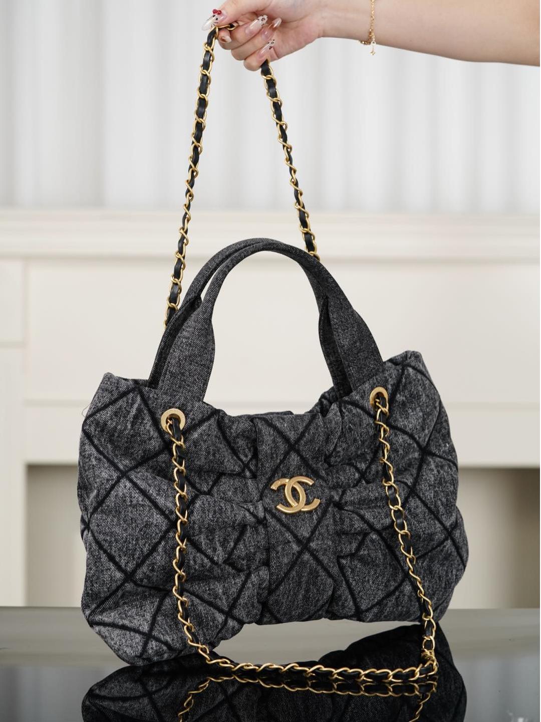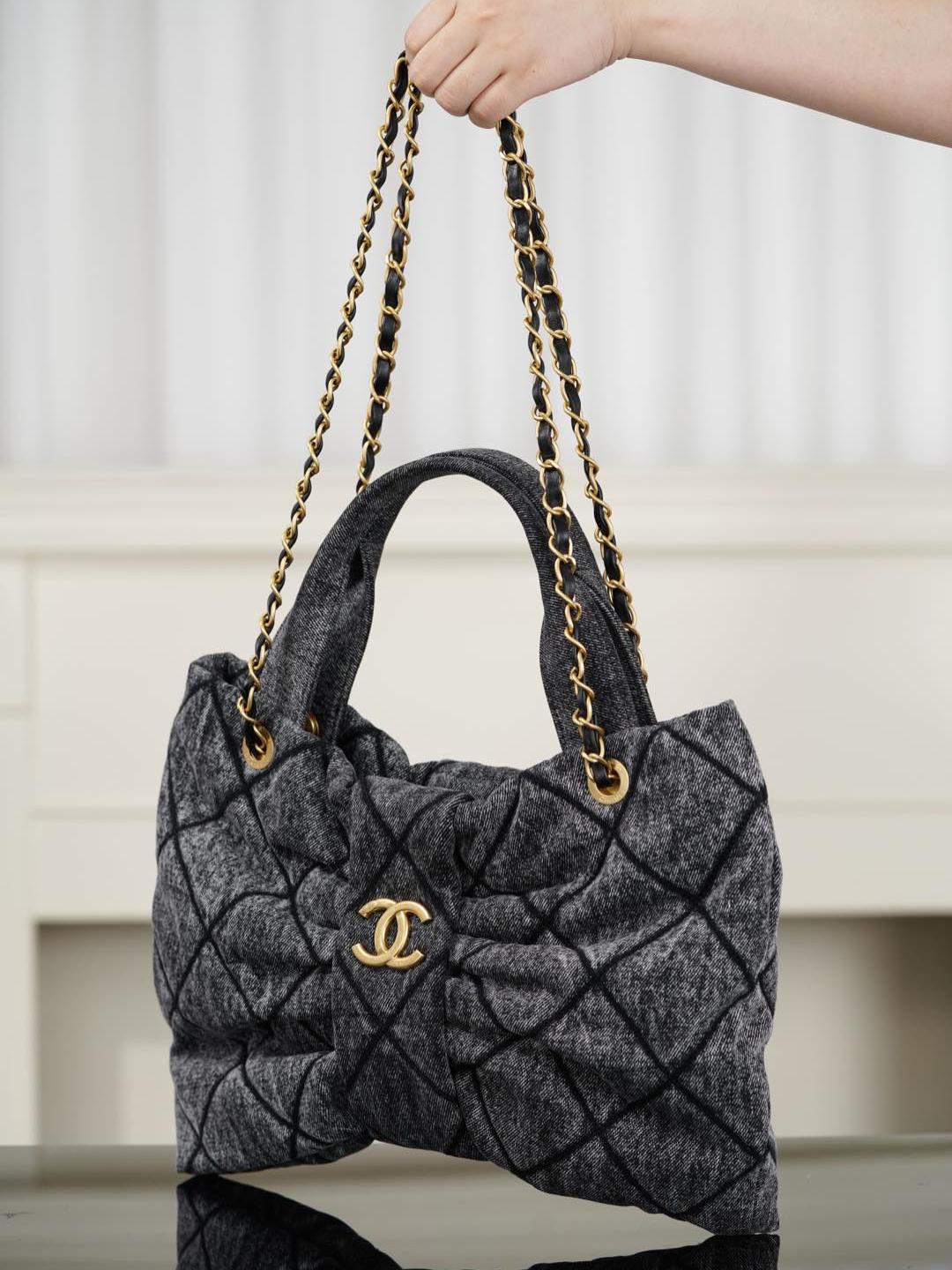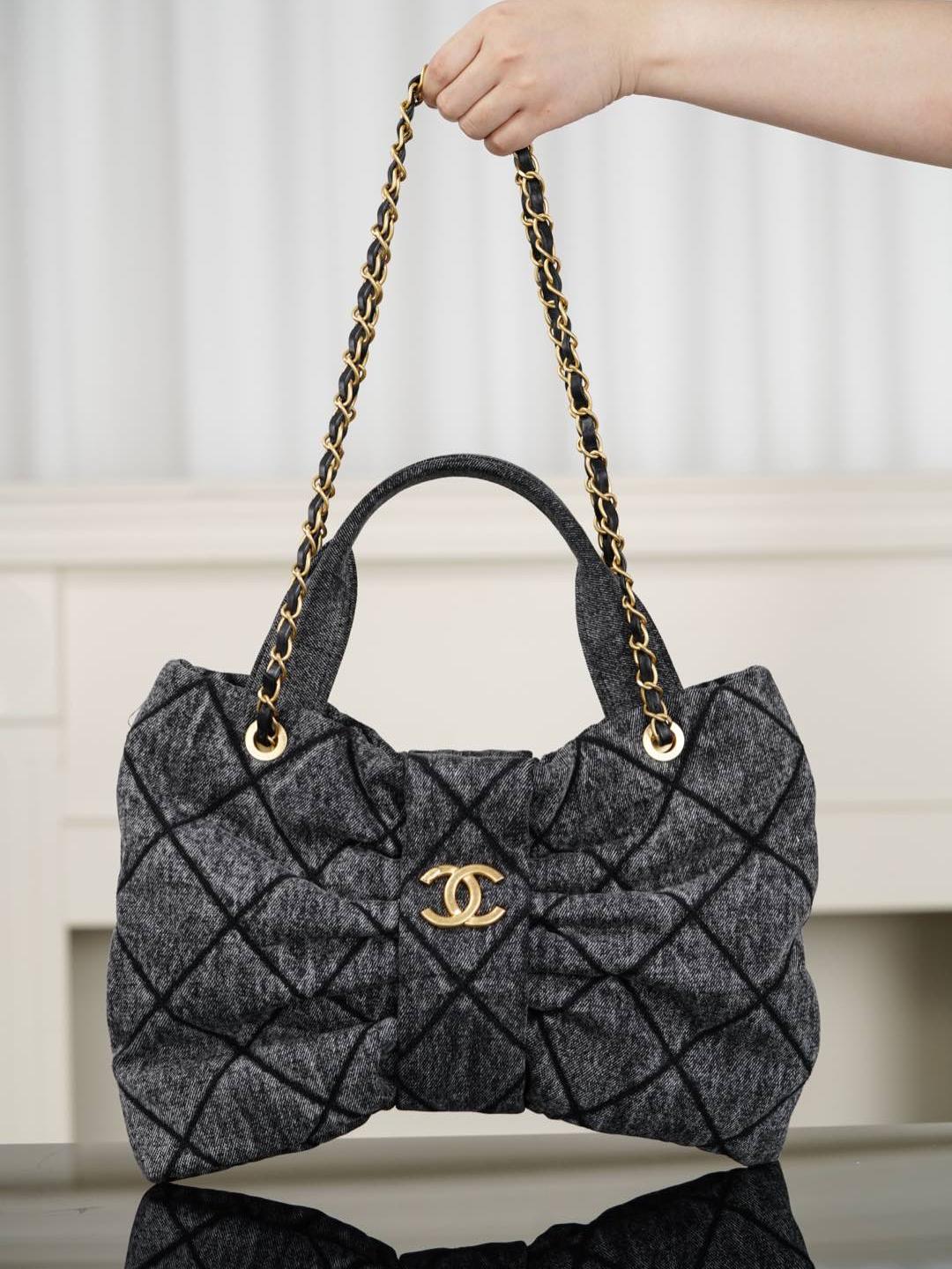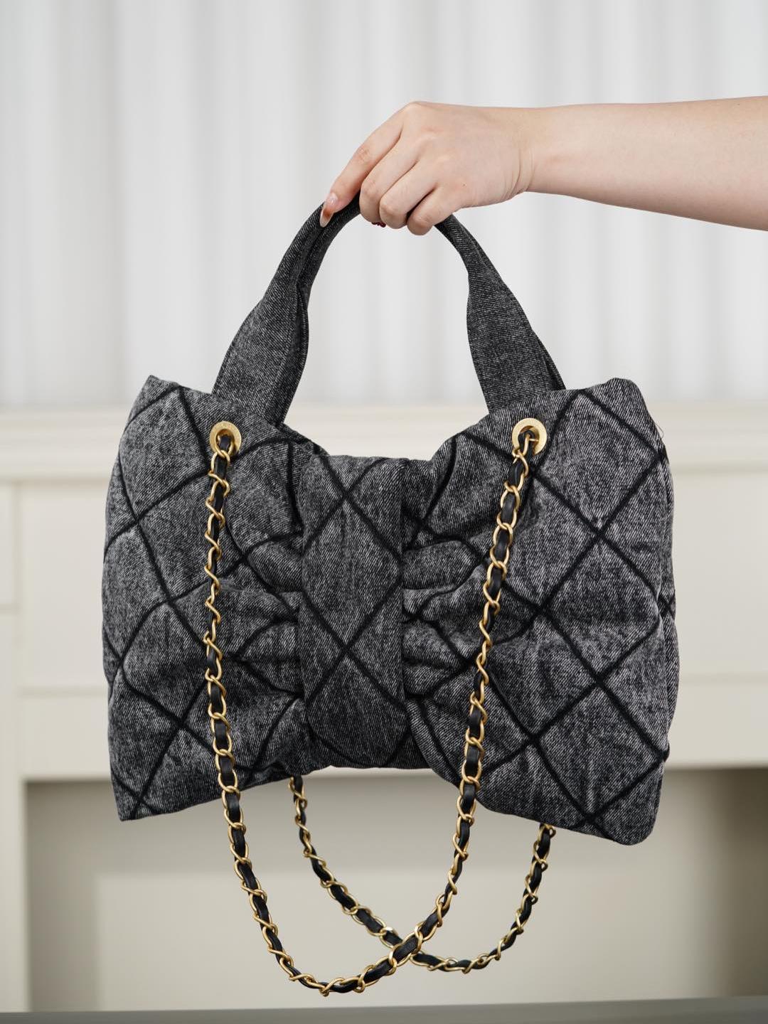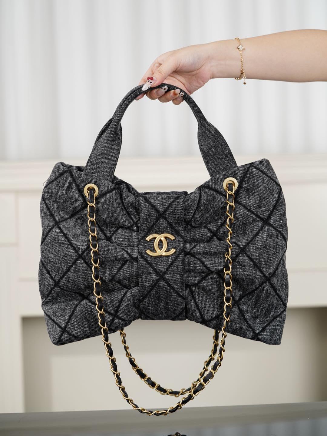 2025秋冬新品 Chanel 25k蝴蝶結黑牛仔手袋(中號)奢侈品 精品