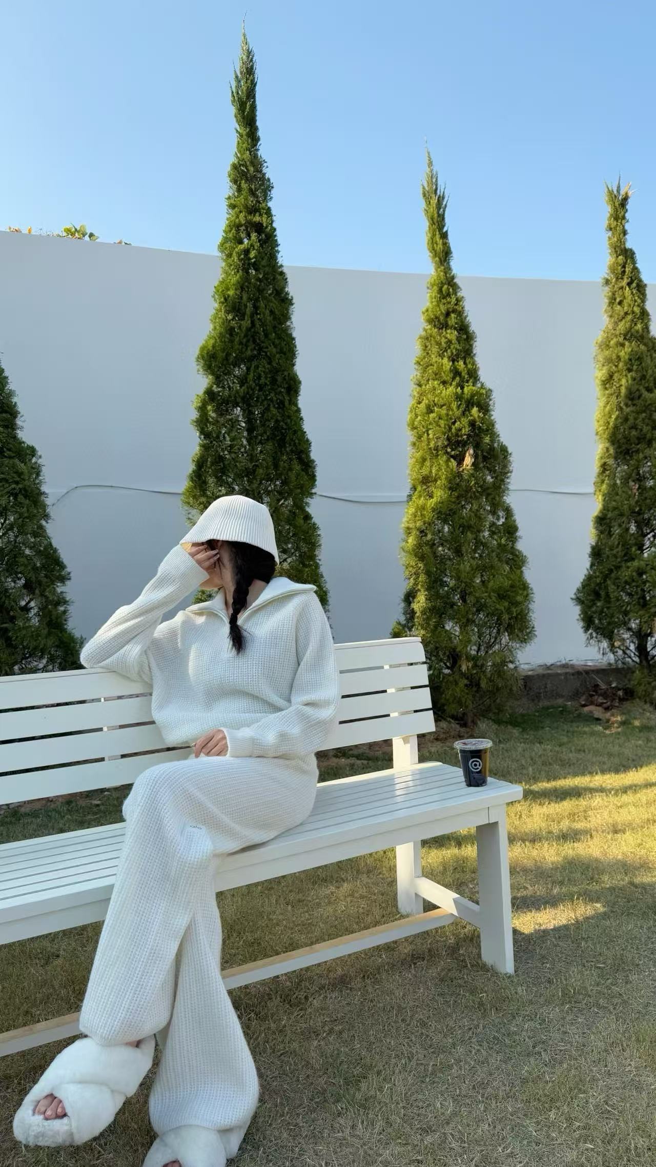華夫格紋理:立體華夫格設計,細膩有層次,增添老錢風的優雅氣質,同時視覺顯瘦又保暖,絕對是精品的選擇。