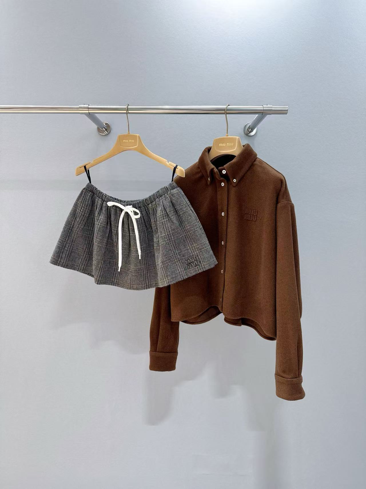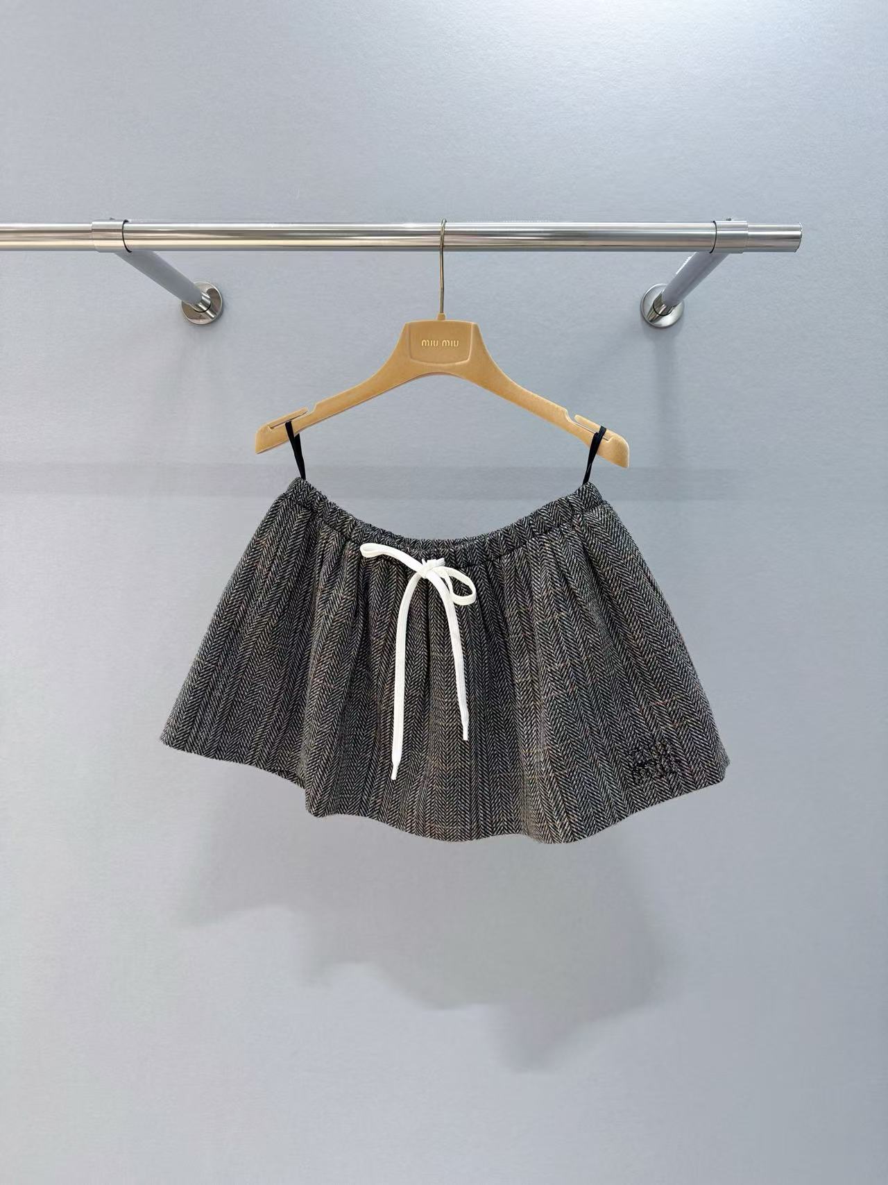 2025早秋 MIU MIU  燈芯絨壓褶半裙 精品 高仿,甜酷減齡又顯瘦!