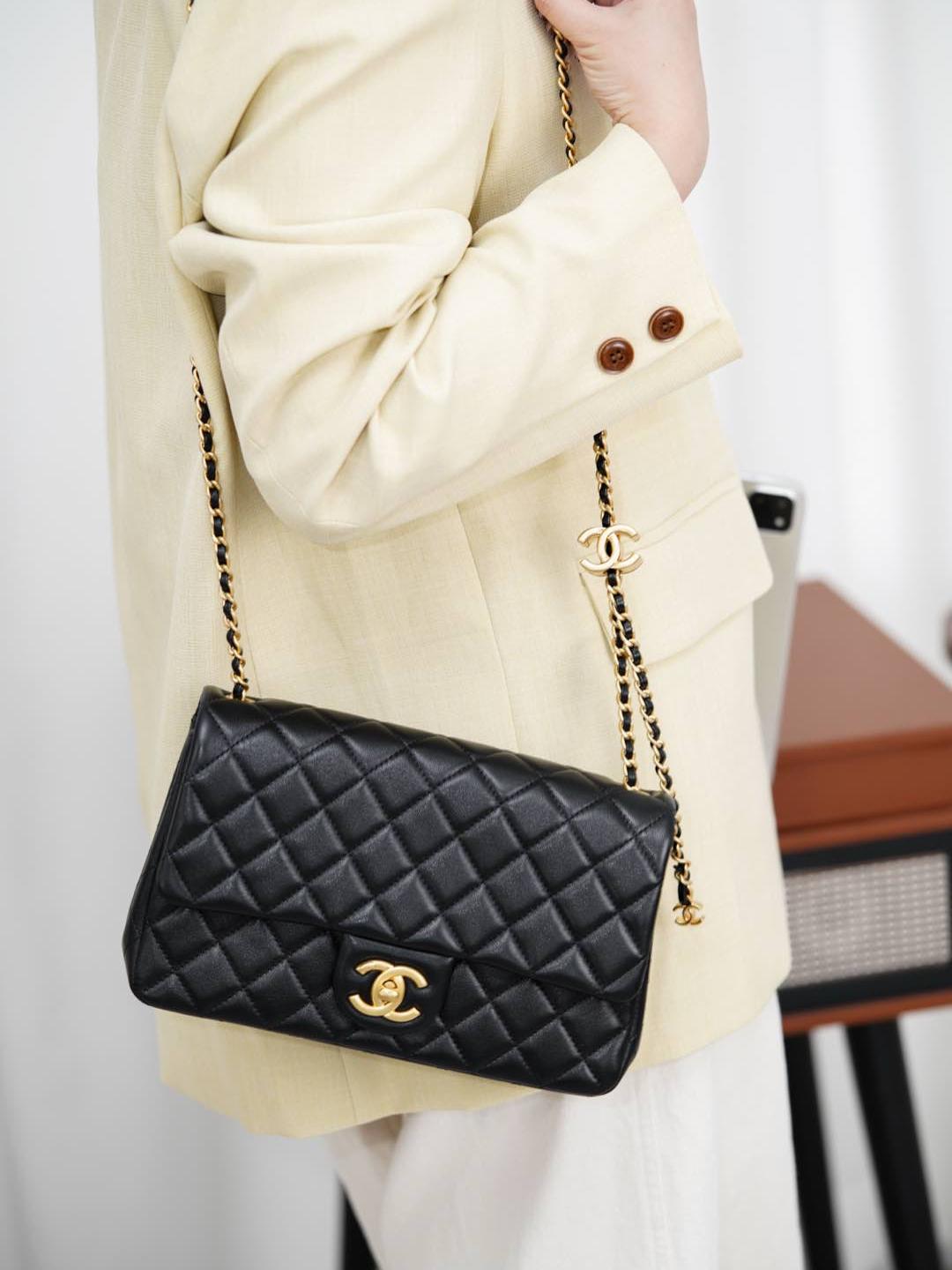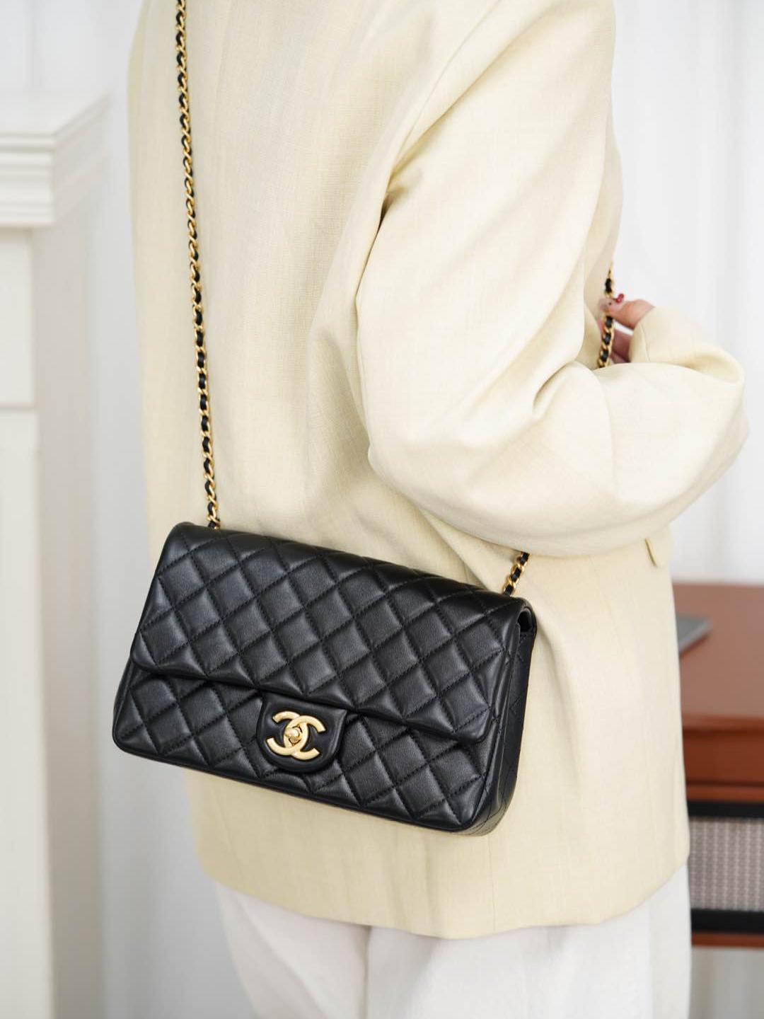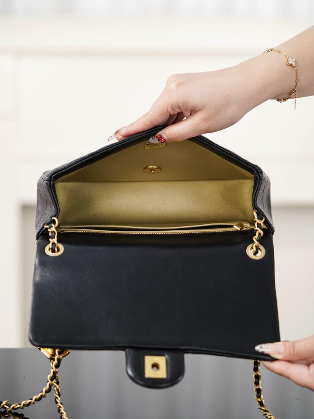 這款 25B 雙 C 鏈條 CF,不僅僅是一個包,更是一件能陪你出席各種場合的經典收藏。黑金配色永不退流行,無論搭配洋裝、高腰褲或西外,都能散發出自信與優雅。