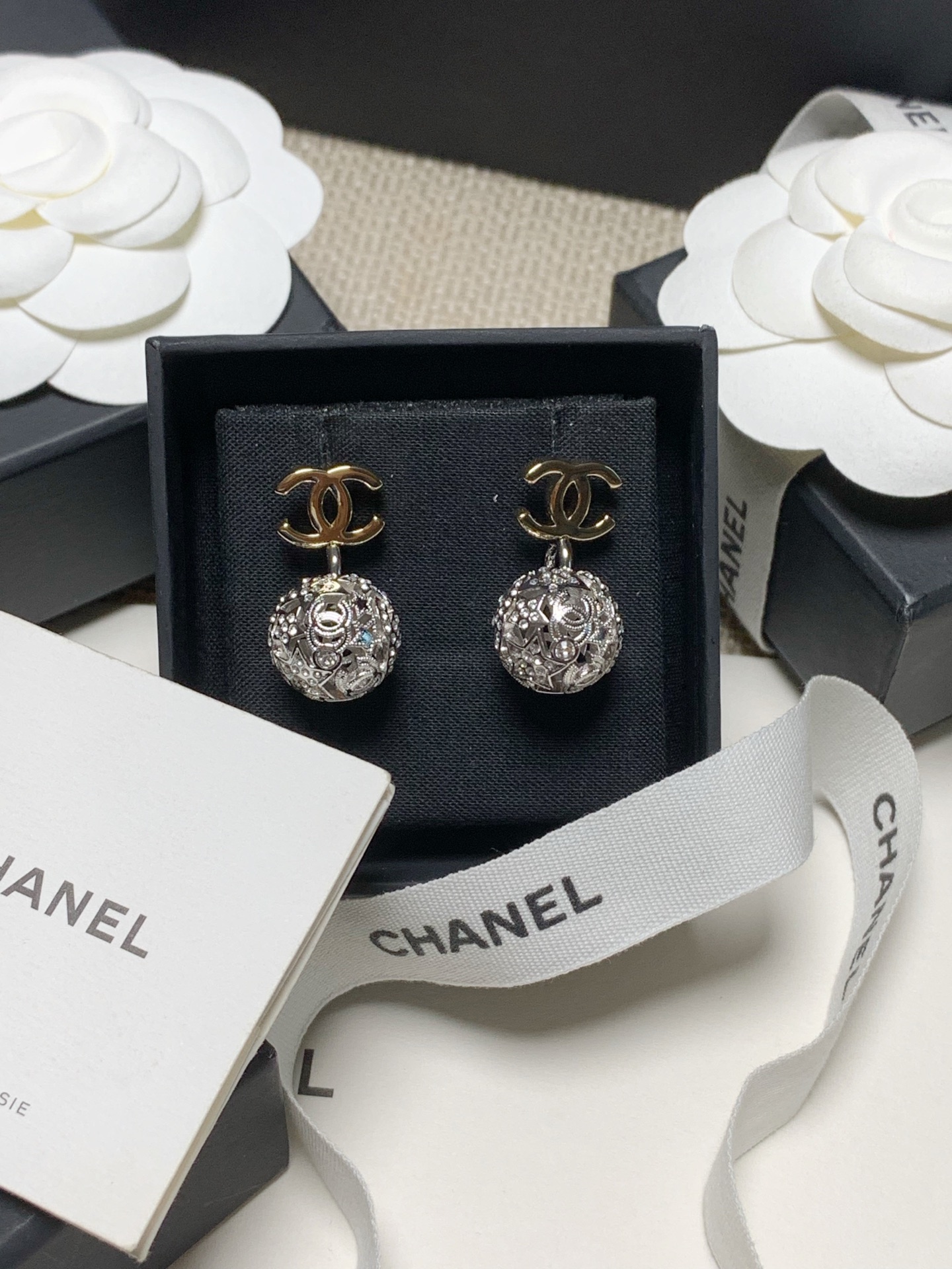 淡金色雙C與銀色小球的組合,設計感滿分,戴上瞬間展現出活潑又減齡的氛圍。小巧的圓球吊墜在光線下閃爍,細緻又不張揚,讓整體造型多了一份俏皮與優雅的融合。