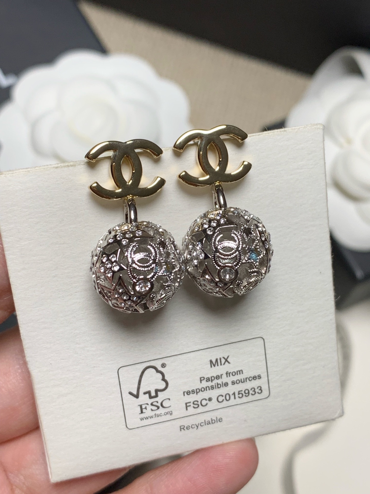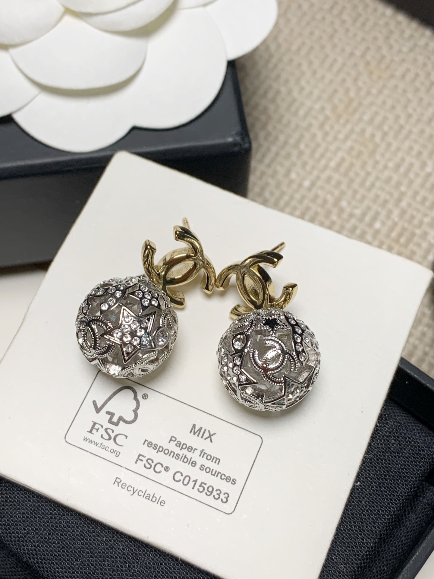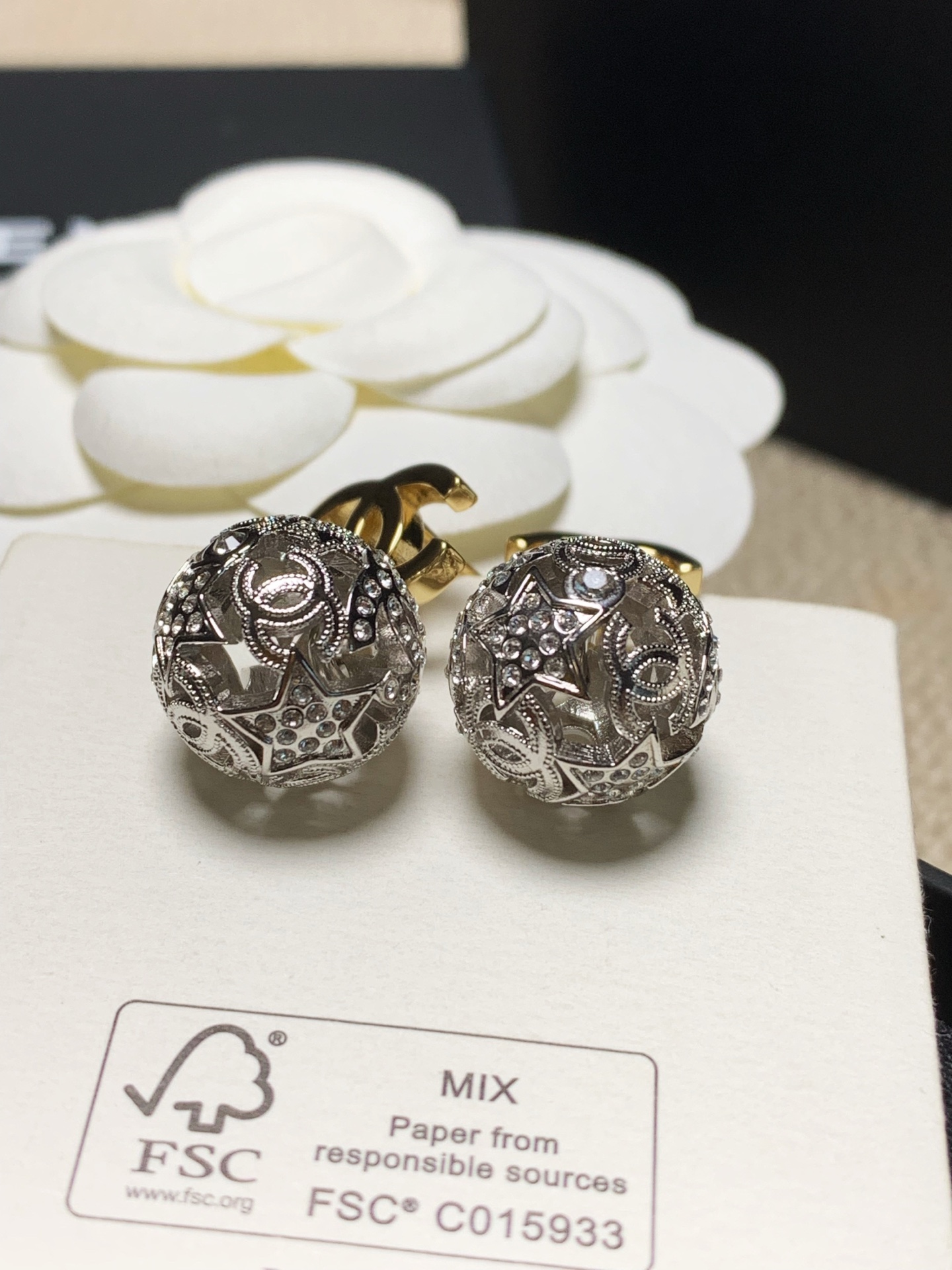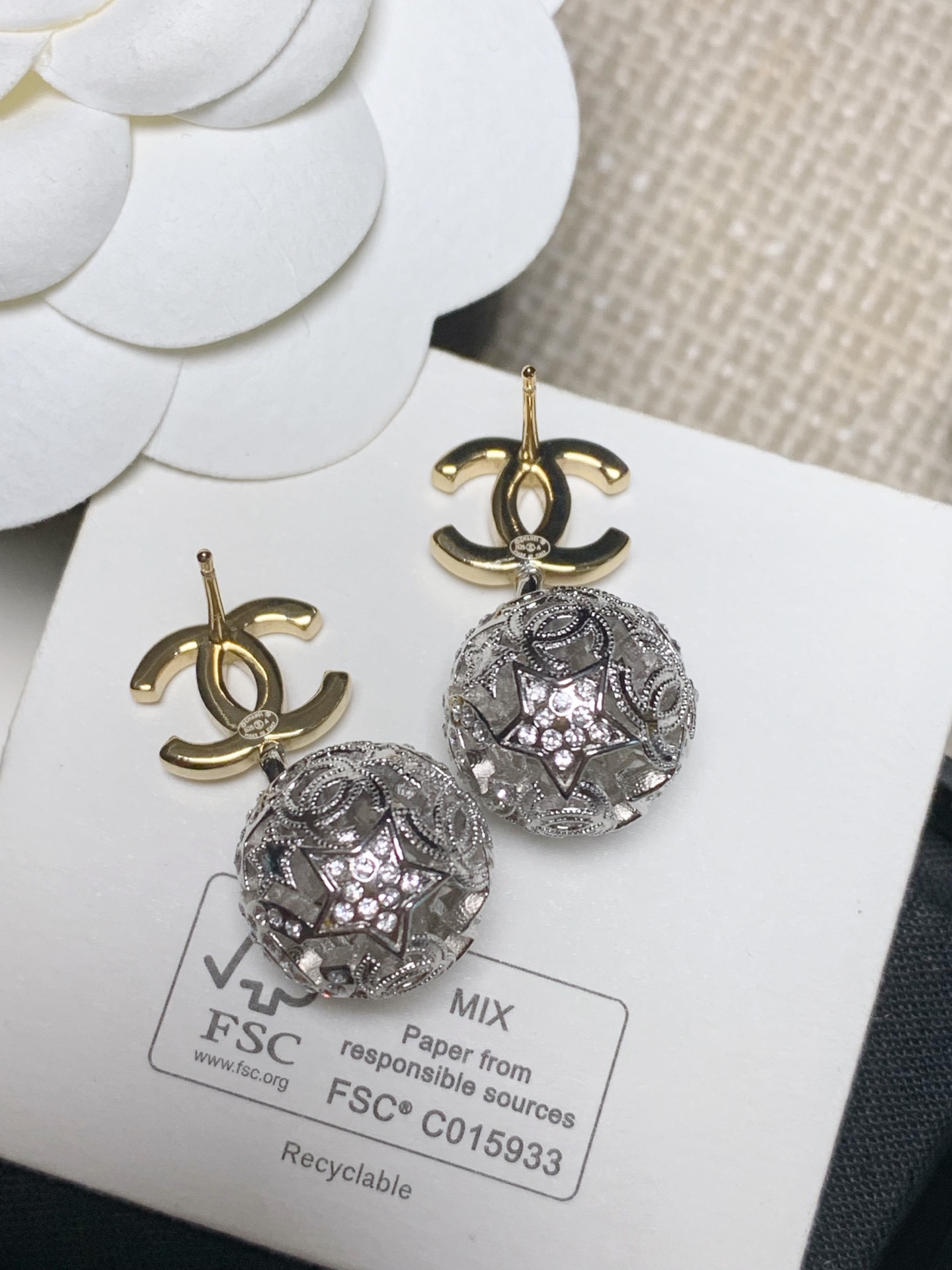 2025早秋新品 Chanel 25a鏤空星星雙C小圓球耳環 精工 精品