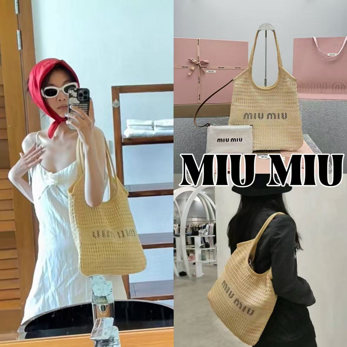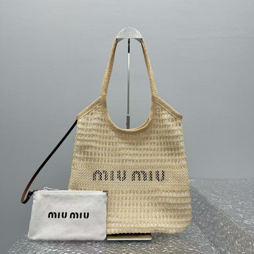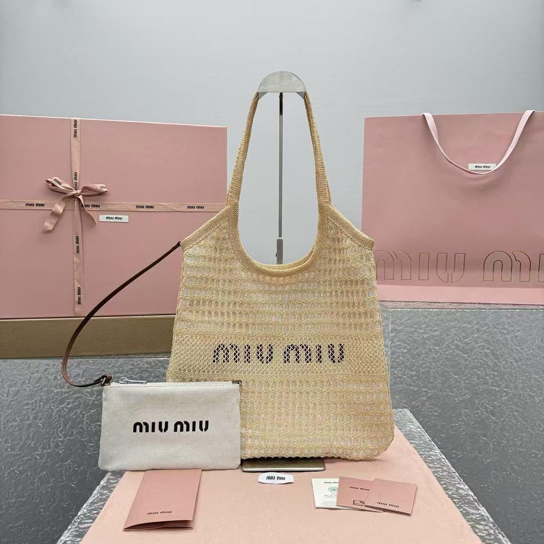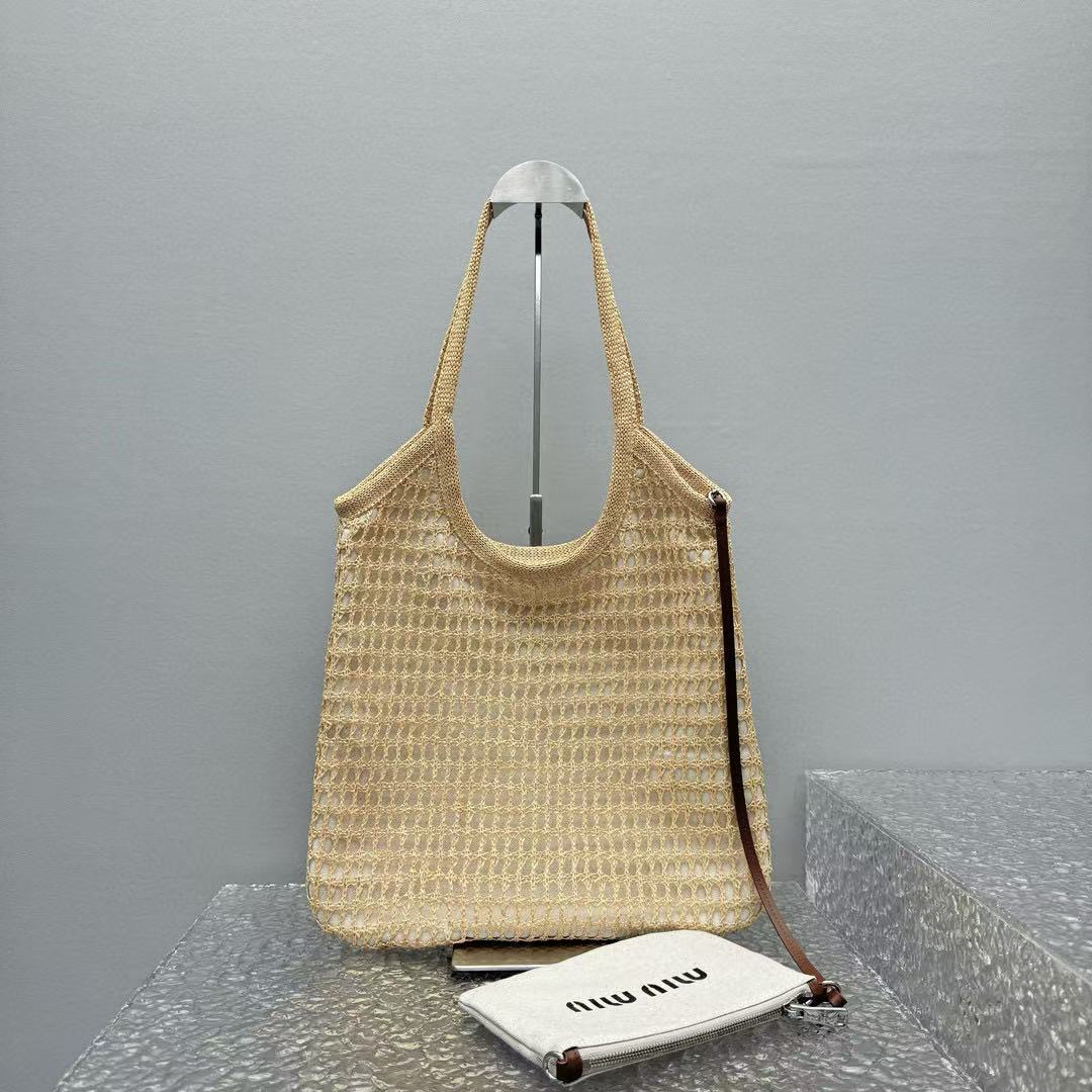 社團重磅福利- MIU MIU 夏日新款編織沙灘包(杏色)奢侈品 精品