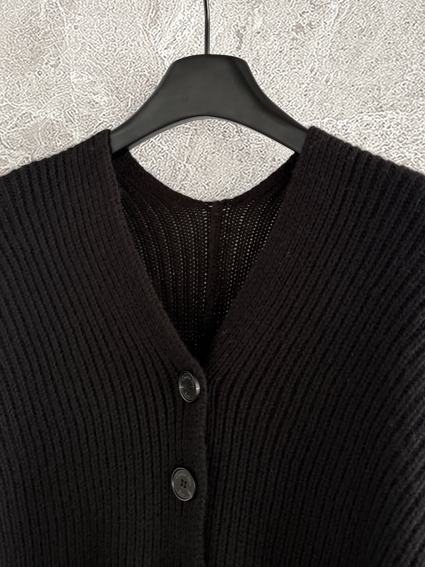 選用羅紋羊絨羊毛混紡紗線,手感松盈柔軟,親膚舒適,完全沒有毛刺感。羊毛的保暖性搭配羊絨的細膩柔滑,讓整件開衫既保暖又輕盈,不會有厚重或悶熱感。