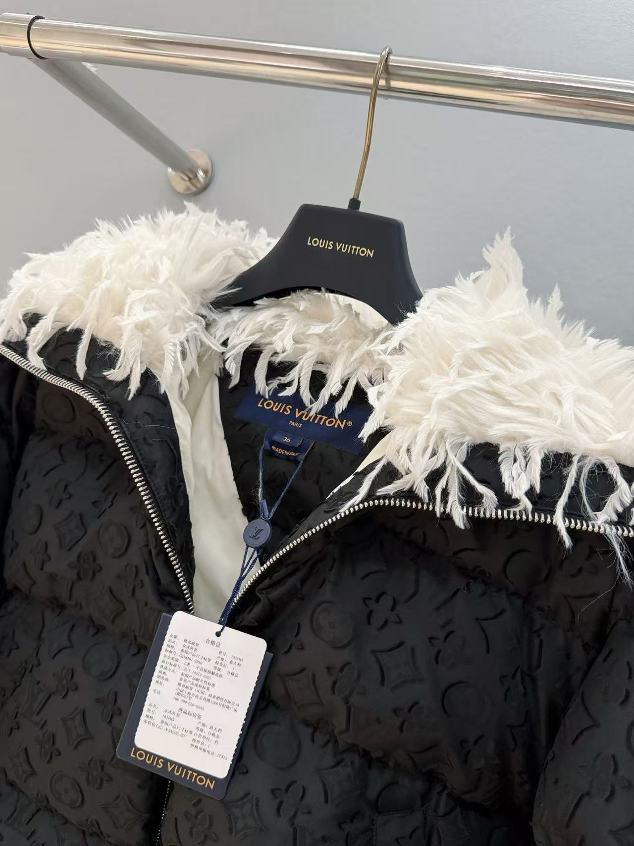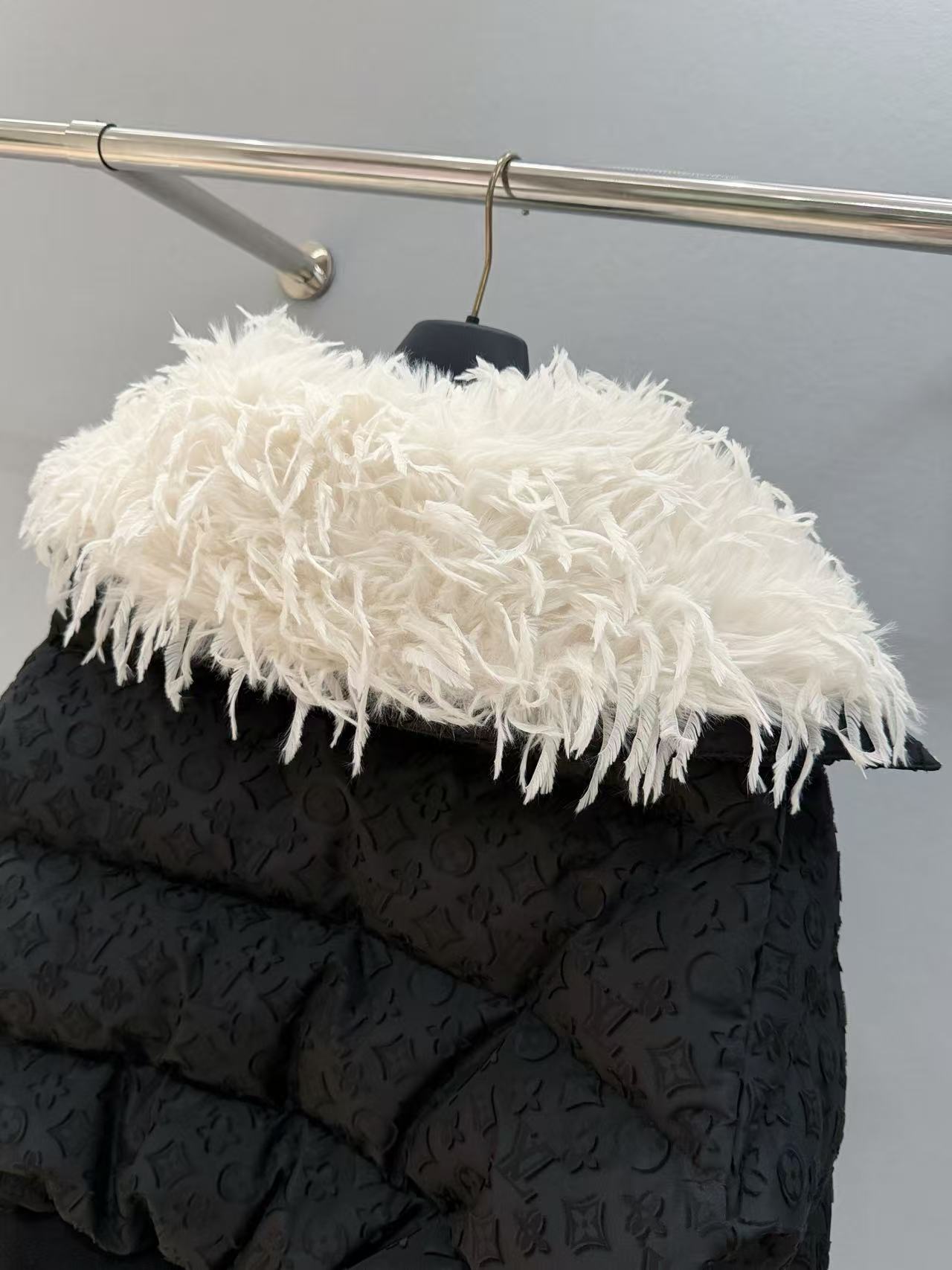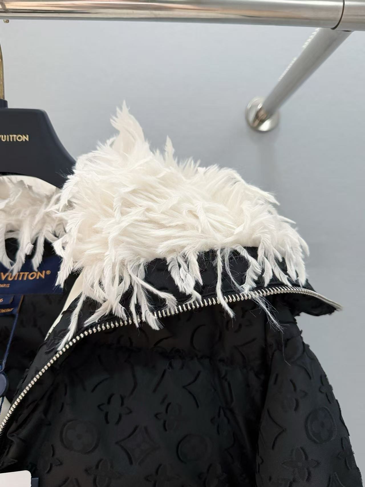2025早秋  Louis Vuitton 暗紋羽絨滑雪外套 精品 時尚,領子羽毛靈動感直接融化冬天!