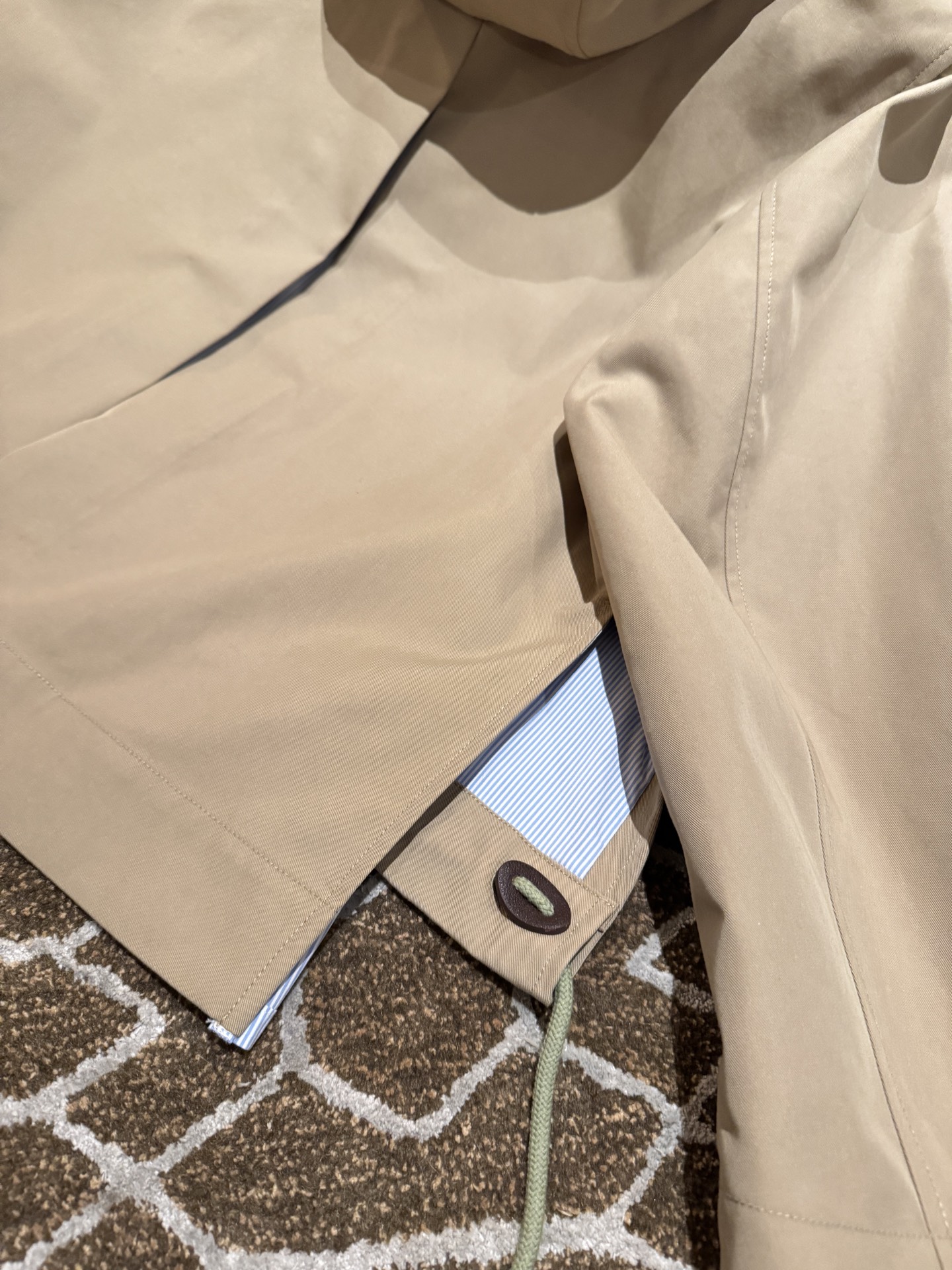 使用品牌特選的定製材質,手感滑順、垂墜度極佳。挺度高但又不厚重,兼具透氣與防風效果,無論春季或初秋都能輕鬆駕馭。質地乾爽不易皺,出門一整天依舊維持俐落外型,是一件真正「實穿又高級」的單品,值得作為奢侈品收藏之一。