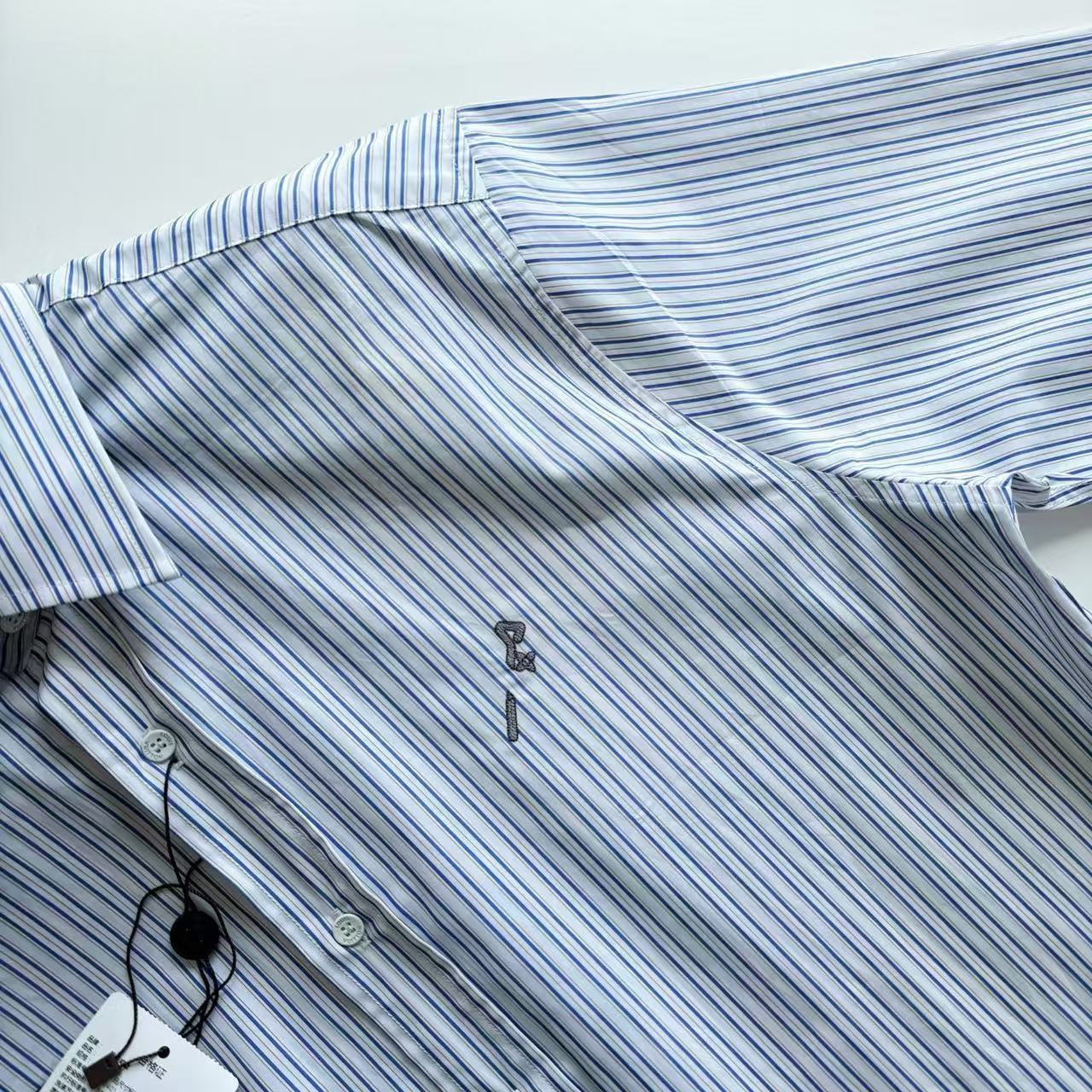 手縫鈕扣:鈕扣是手縫的白色鈕扣,這種精緻的細節,完美還原了專櫃的品質,為整件襯衫增添了一份奢華感。