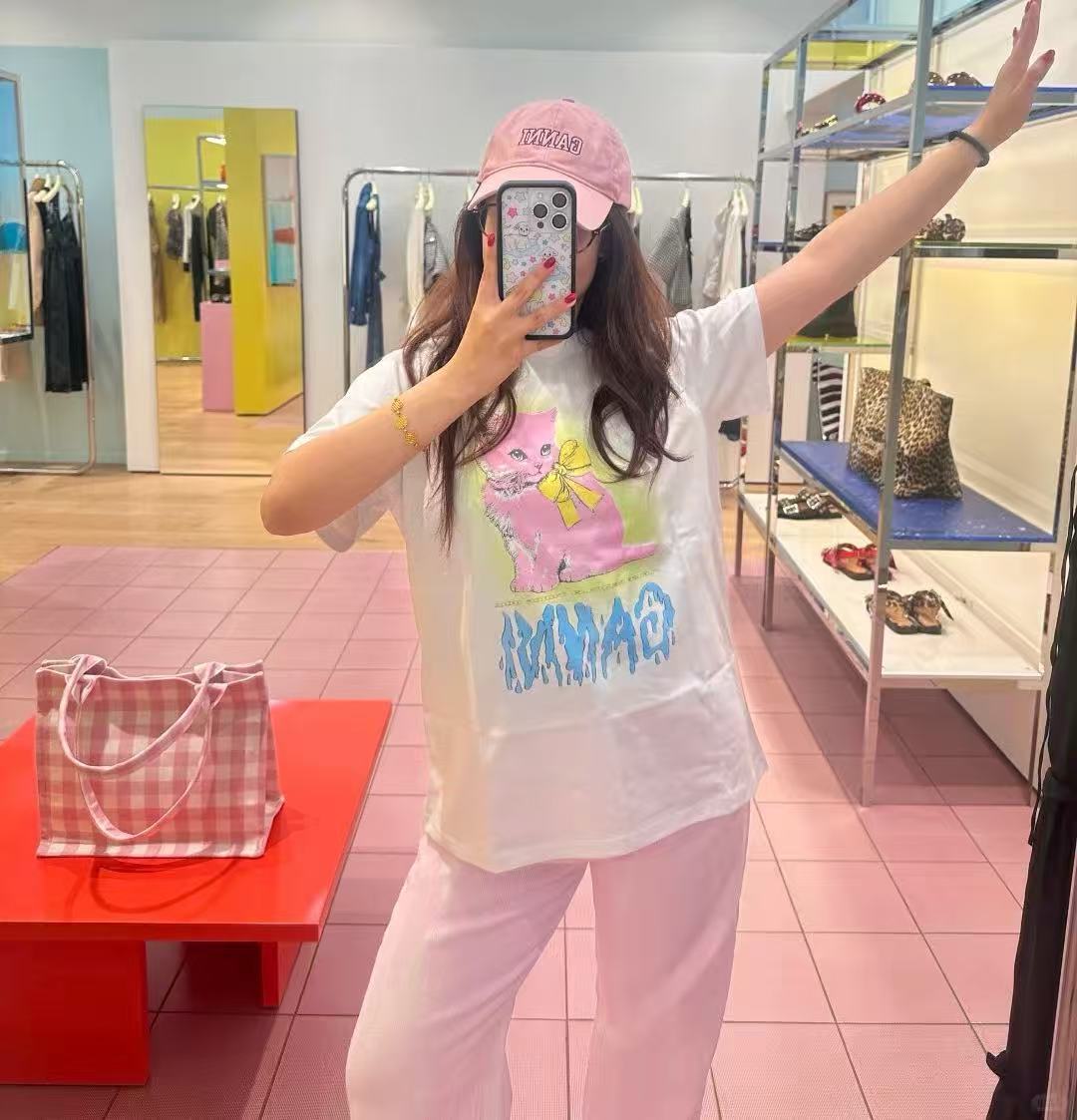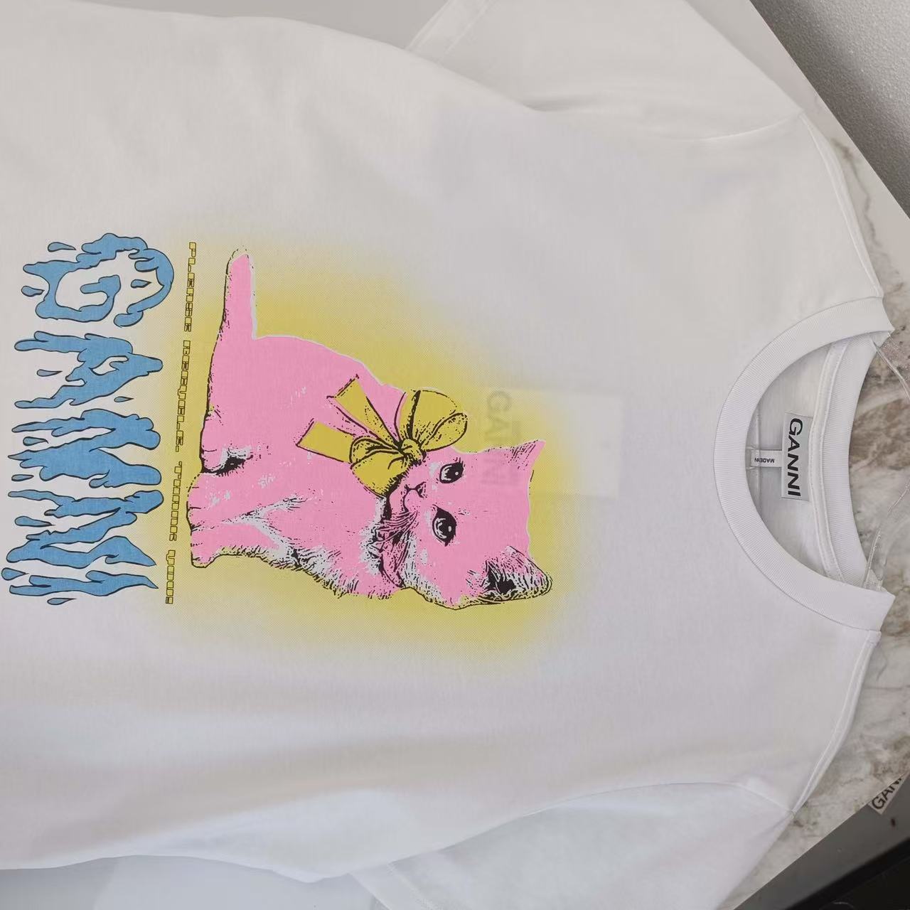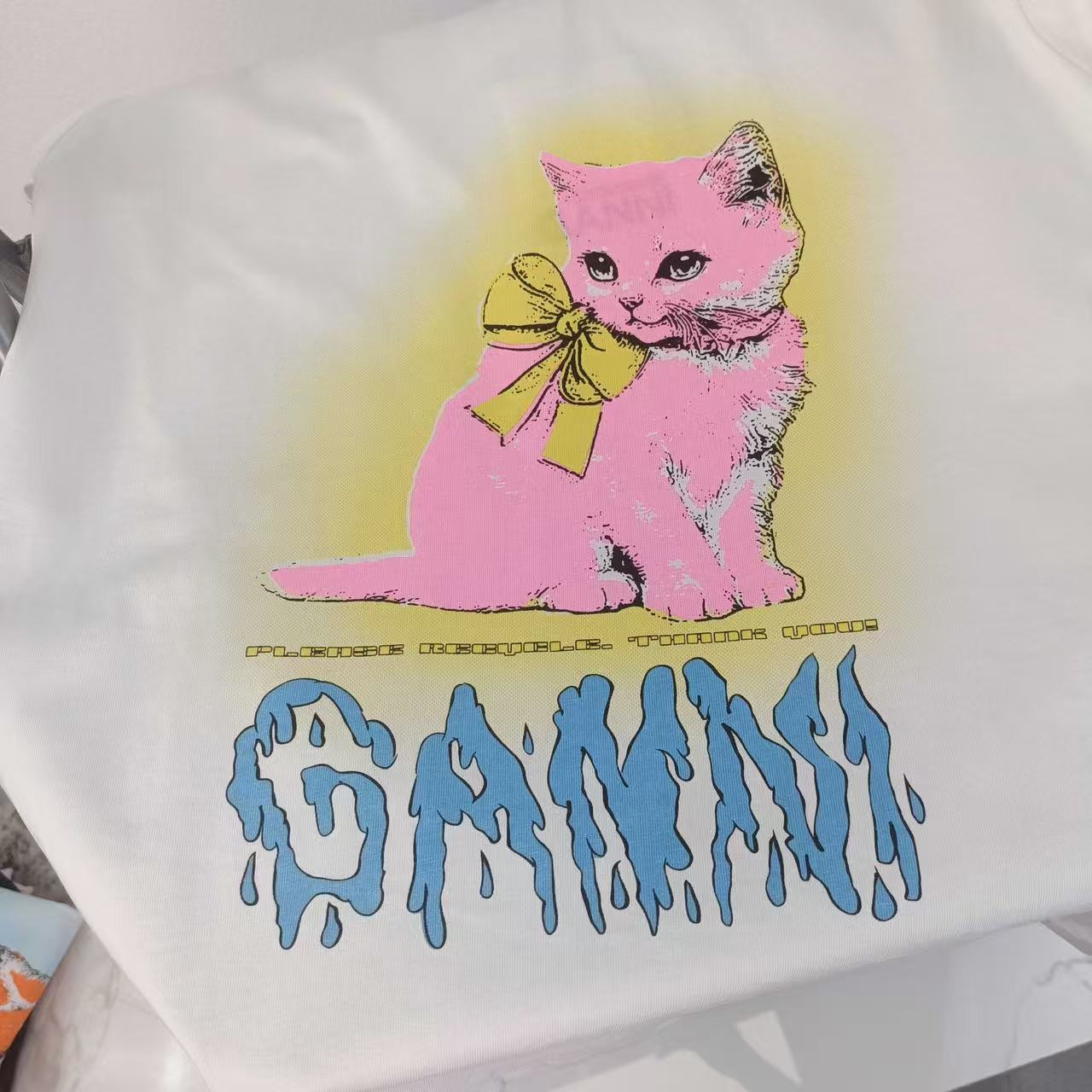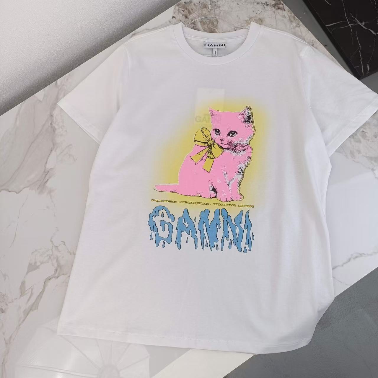 2025早秋新品 Ganni家 貓咪圖案短袖