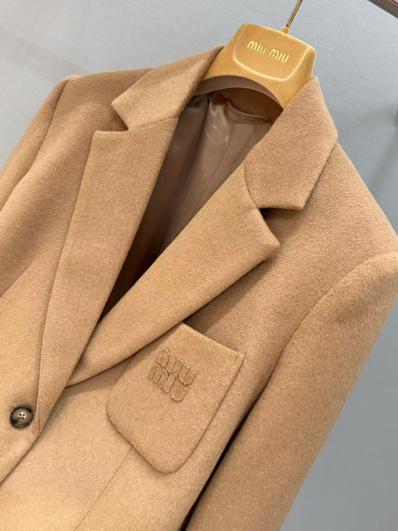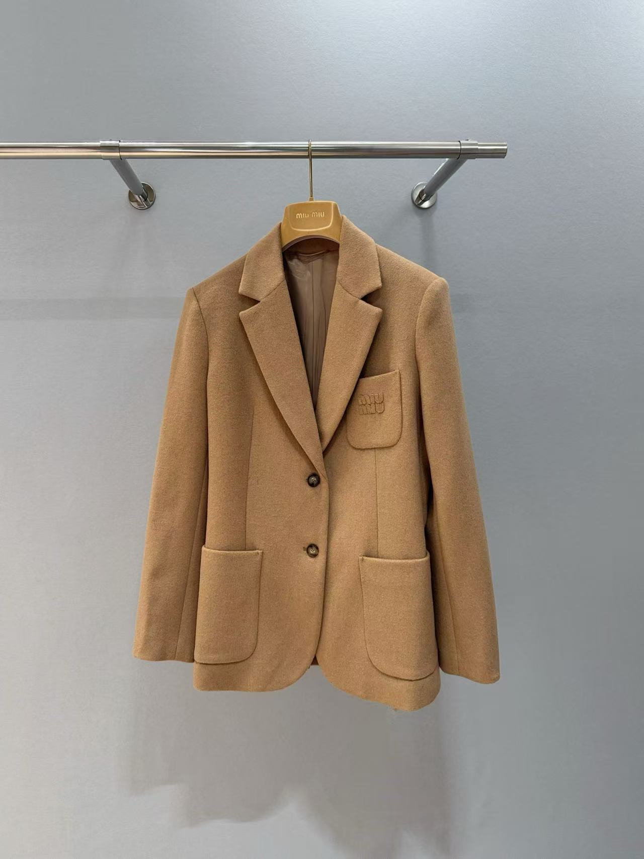 <div>2025早秋 MIU MIU 徽標驼毛西服外套 高仿 精工</div>