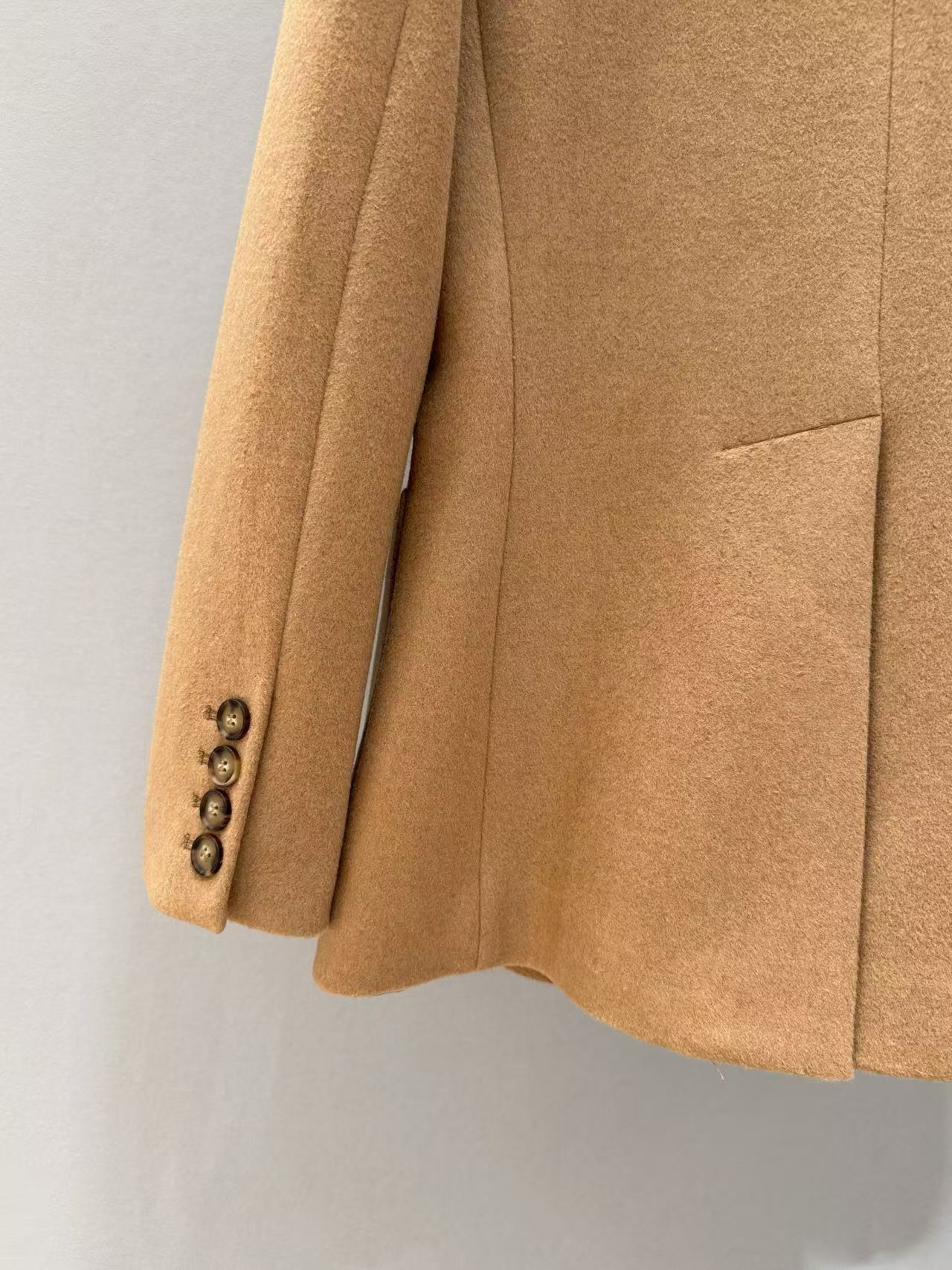 <div>精選頂級駱駝毛製成,這種高檔材質讓整件外套不僅時尚,還具備出色的保暖性。</div>